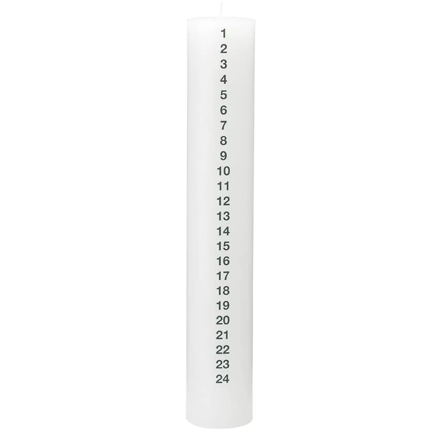 Højt, slankt kalenderlys med tal, som giver et helt minimalistisk og moderne udtryk, og perfekt til den fine lysestage Kvadrat eller cirkel, som passer til lys med en diameter på 6 cm.