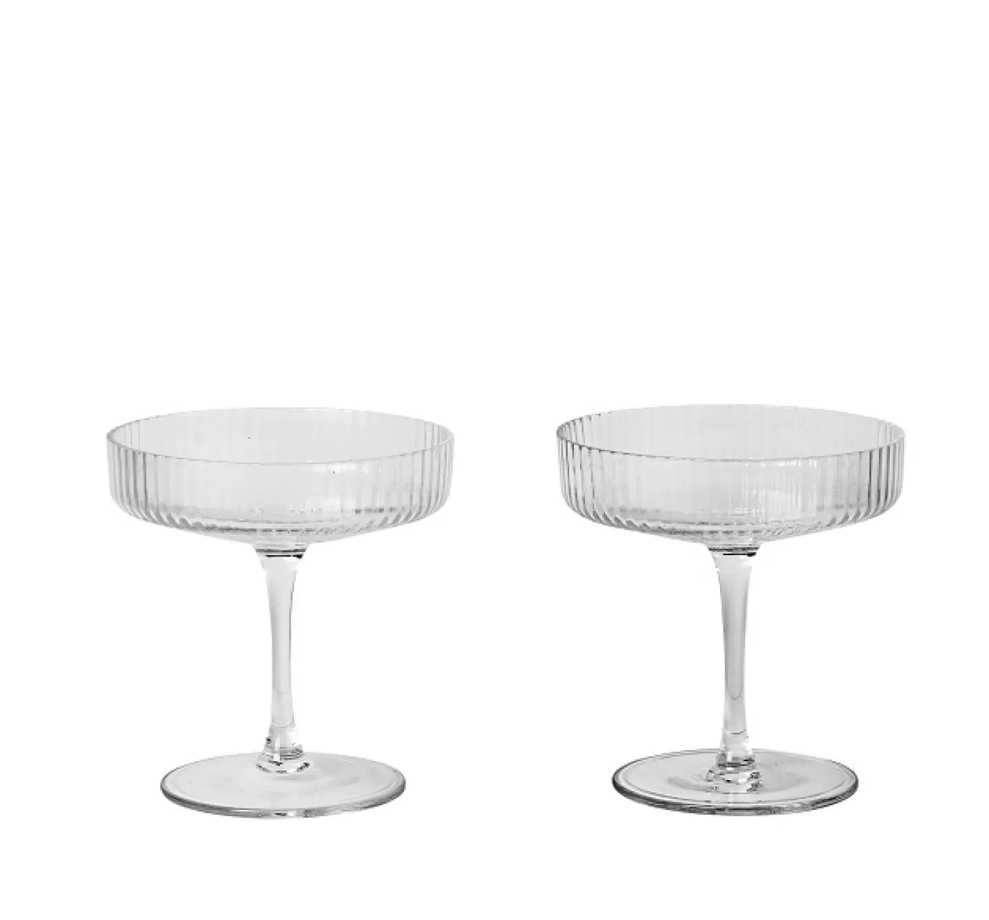 Champagneskålene er fremstillet af fint mundblæst glas, i en form hvor en lav skål balancerer på en lang hals. Skab en boblende festlig stemning og server mousserende vine i de klassisk formede glas med smukt riflet mønster. Er anledningen ikke til bobler, kan du bruge champagneskålen til servering af fine desserter.