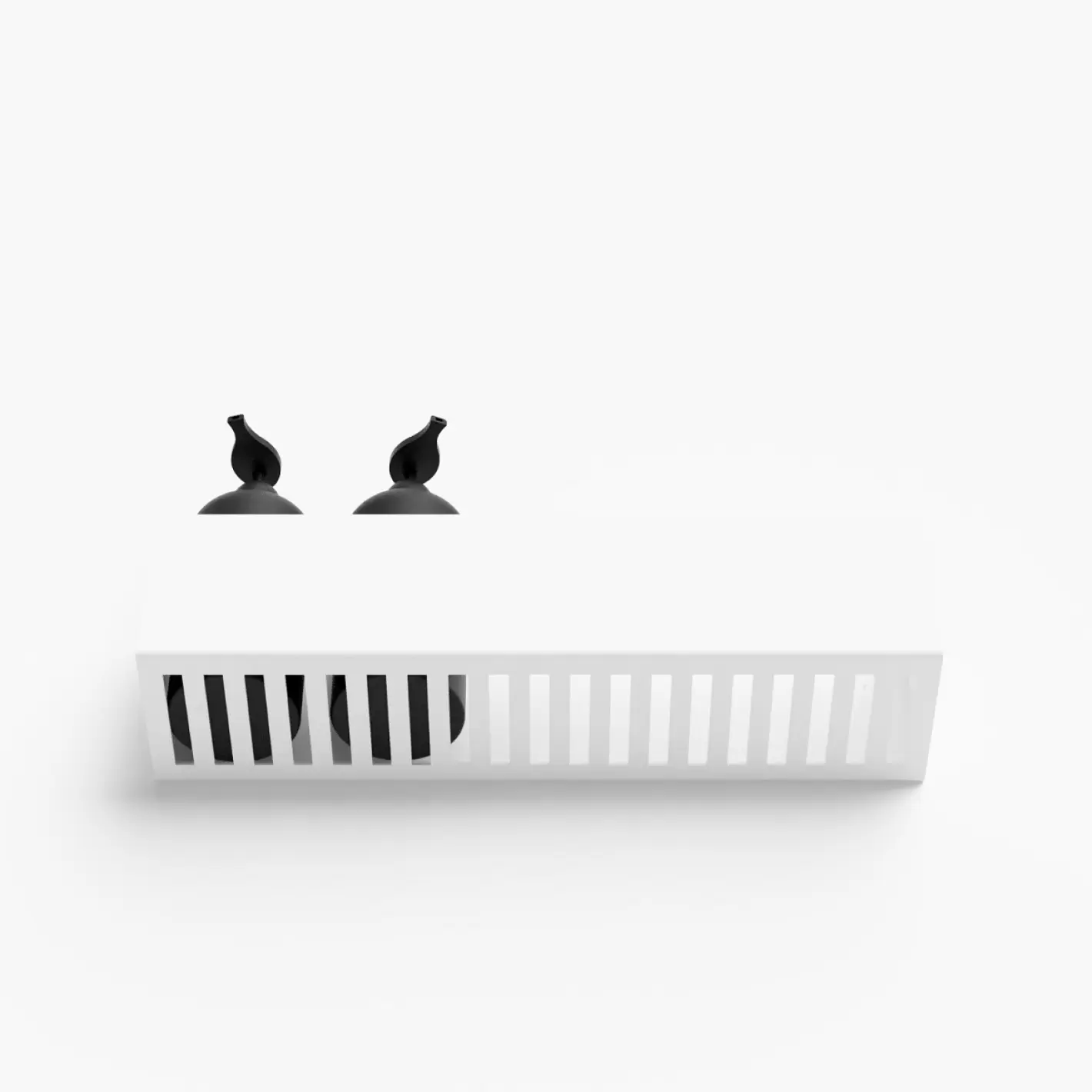 Minimalistisk og elegant opbevaringshylde til shampoo og andre sæber i brusenichen, med åbne riller i bunden så vandet kan løbe fra. Hyldens enkle design er udført i pulverlakeret rustfrit stål, og er udviklet til at kunne klare badeværelsets høje luftfugtighed, uden at materialet tager skade.