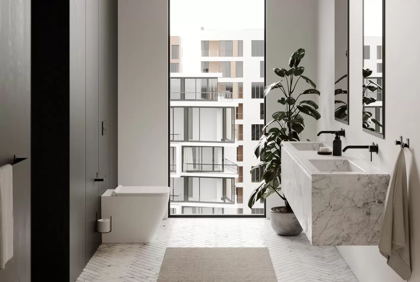 Serien af kvalitetstilbehør til badeværelset har fået en praktisk tilføjelse, nemlig denne holder til ekstra toiletruller. Holderen er bukket af et enkelt stykke rustfrit stål med samme stærke pulverlakering som seriens andre elementer. Denne behandling giver overfladen en høj holdbarhed og beskytter mod den luftfugtighed materialer udsættes for i boligens vådrum.