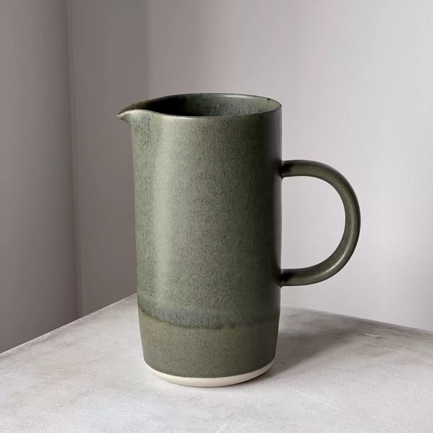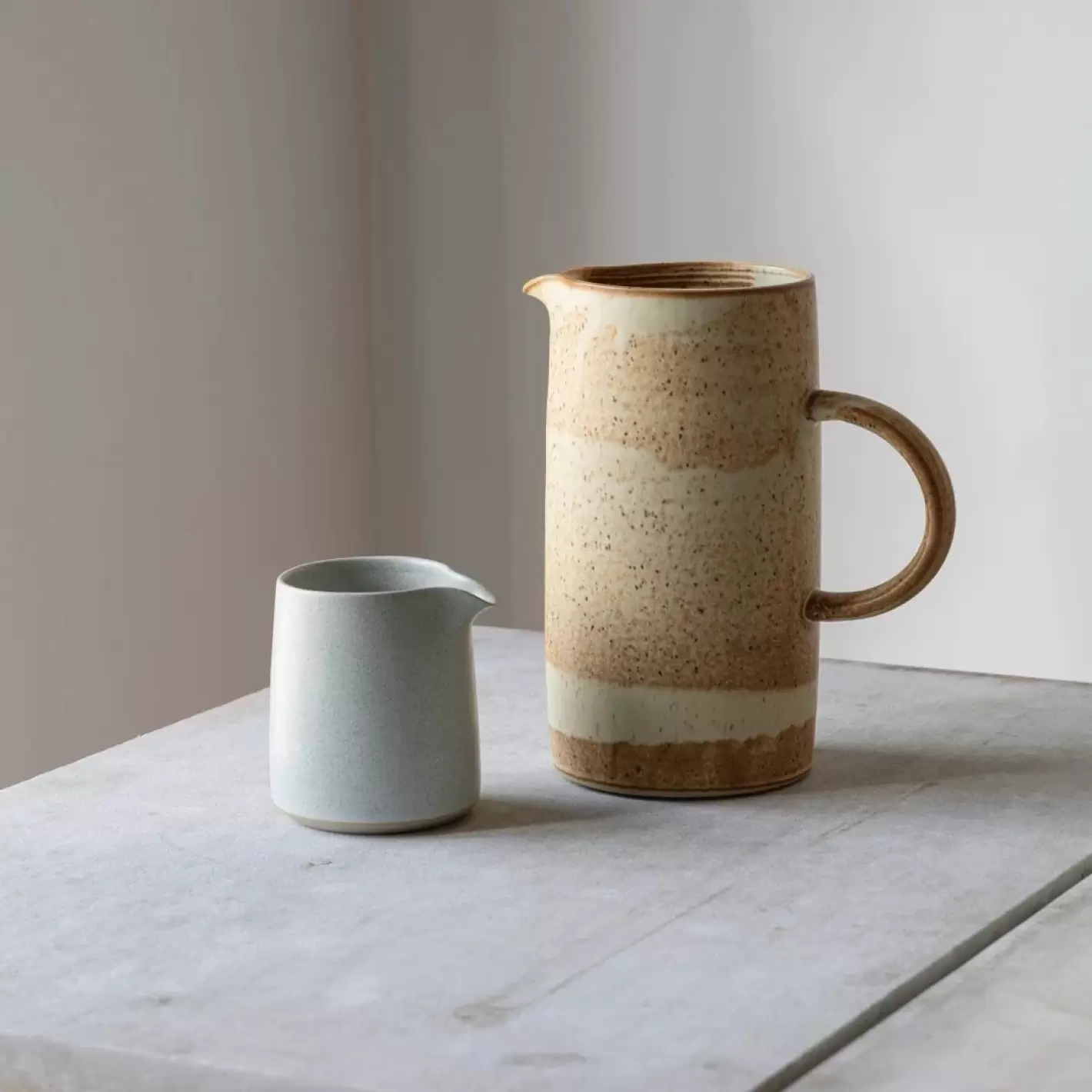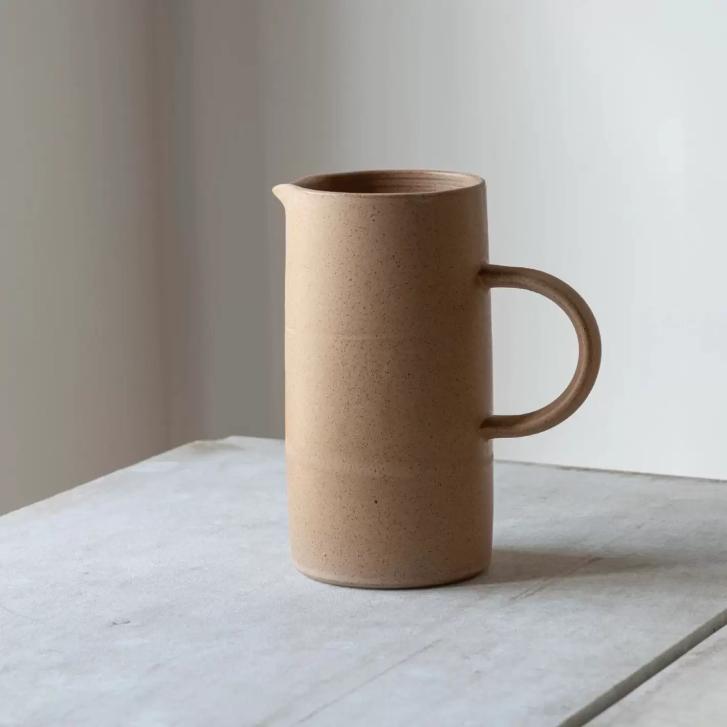 Denne kande er en elegant keramik kande med hank, der ligger godt i hånden. Kanden rummer 1 liter og takket være den alsidige størrelse, er den ikke alene god til servering, men også perfekt som vase til en buket blomster.