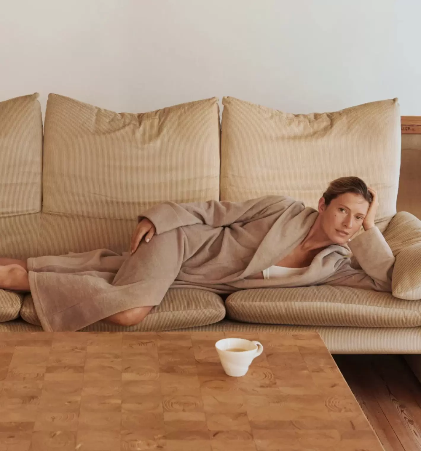 Mette Skjærbæk - den skønne kvinde bag Karmameju - designede denne fantastiske badekåbe tilbage i 1999, så man kan roligt sige, at den er blevet en klassiker, som er ganske uundværlig for alle, der er så heldige at eje den. Her er der tale om meget mere end en badekåbe, den er så dejlig at have på, at man ønsker at svøbe den om sig og bare flytte direkte ind i den! Den er lavet af ultrablød fleece af super kvalitet.