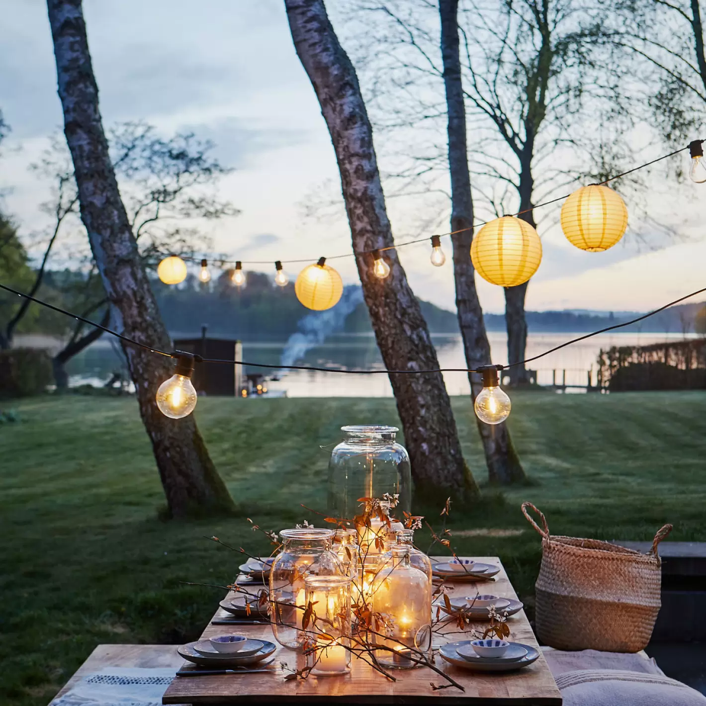 Pift din lyskæde op med disse dekorative skærme af sandfarvet rispapir, som gør skæret fra lyspærerne blødt og hyggeligt til både hverdag og fest.