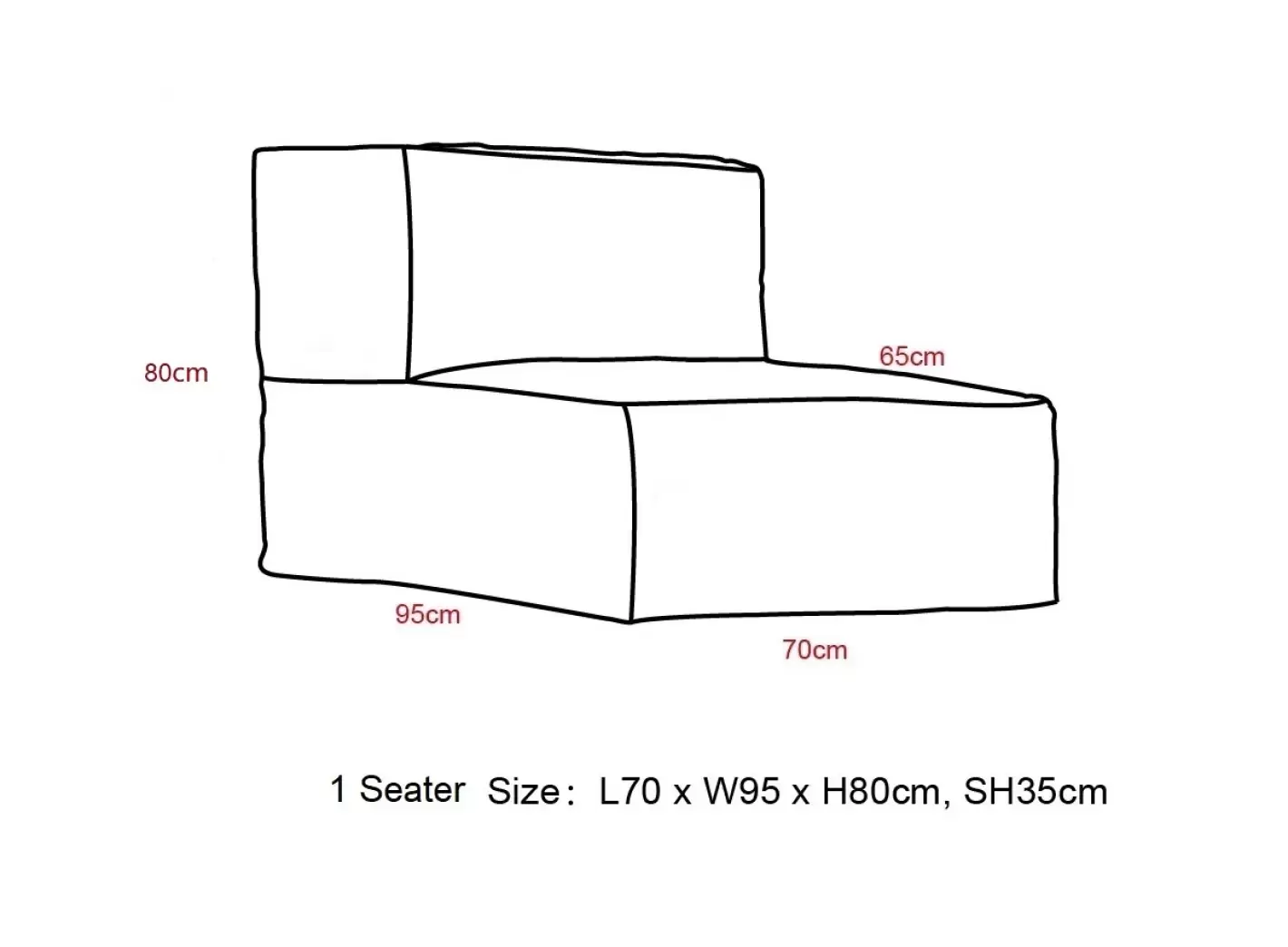 Mål: 70 x 95 x H: 80 cm. - Siddehøjde: 35 cm.