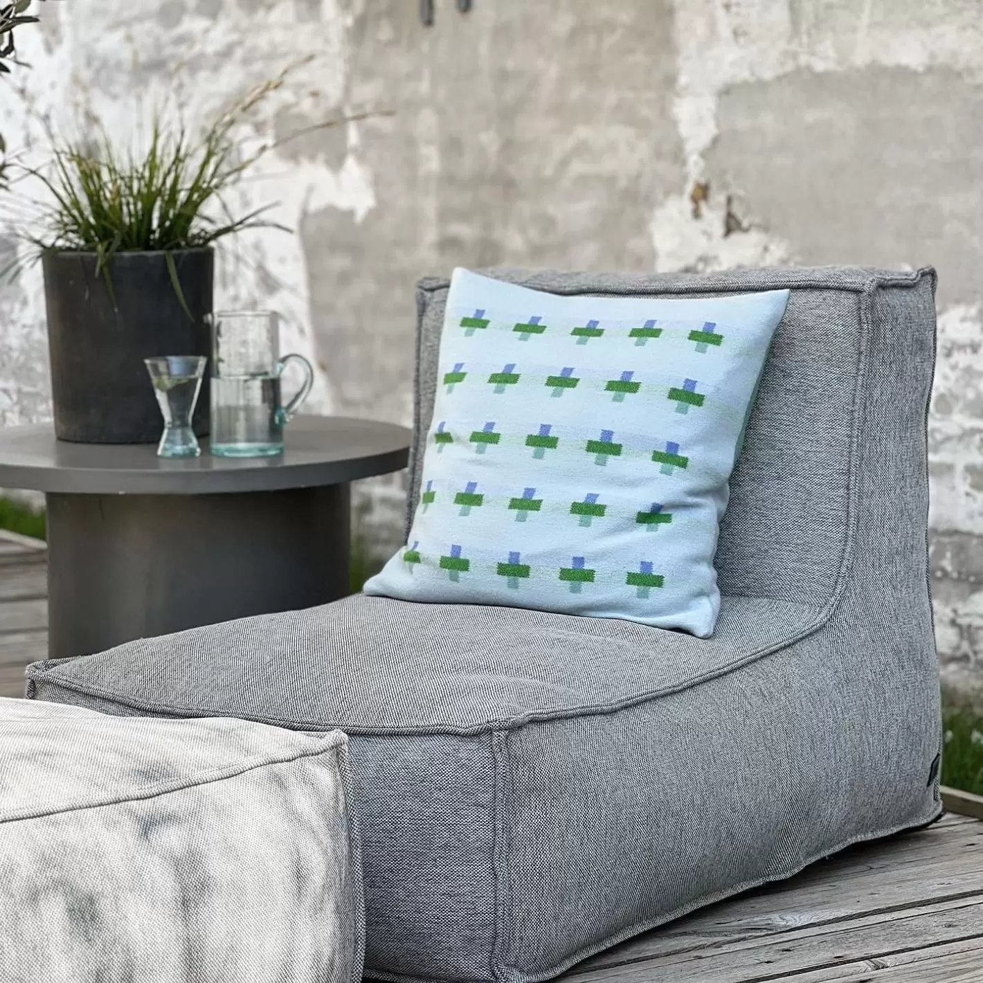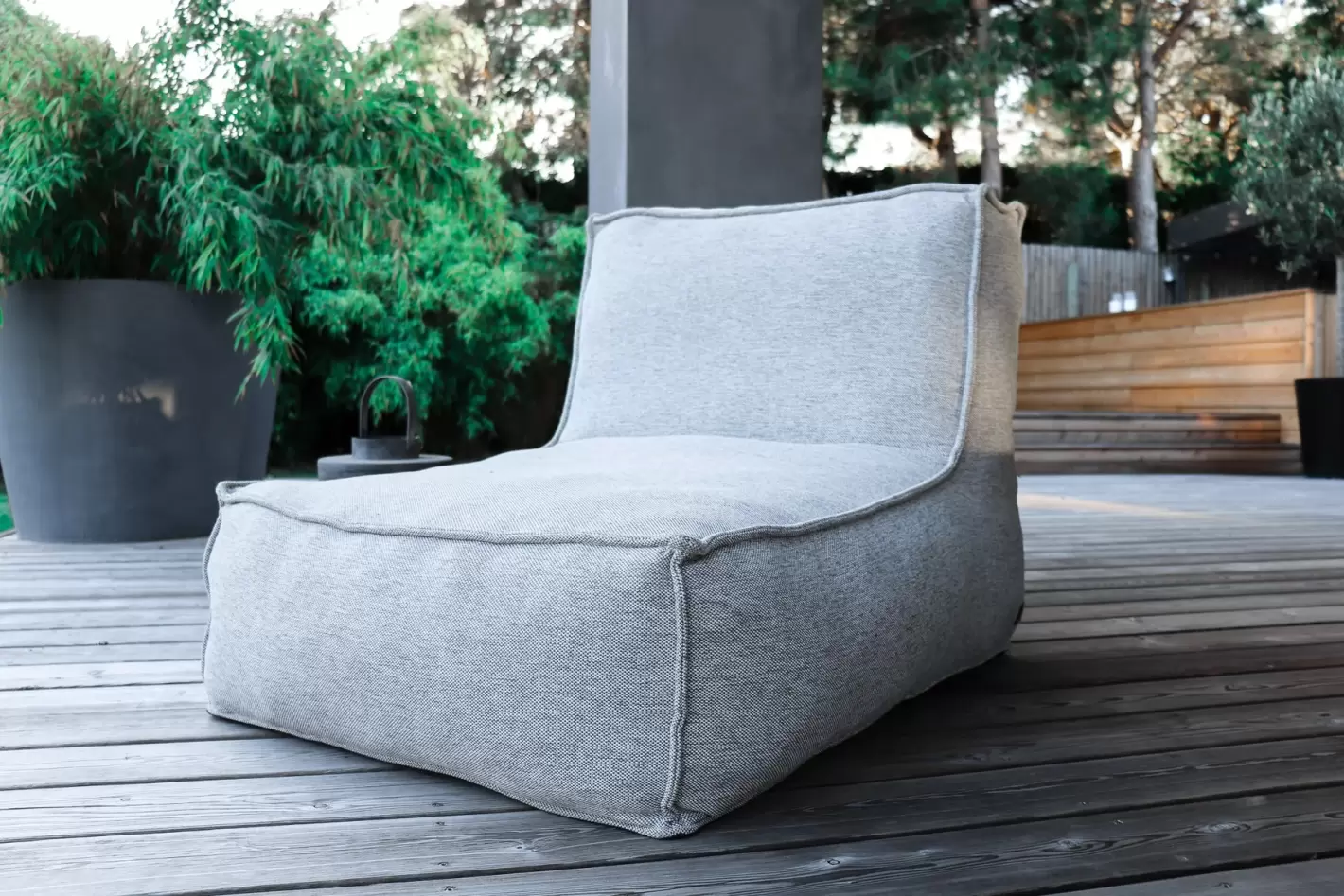Troispommes Home har skabt den perfekte loungeserie med komfortable møbler beklædt med vejrbestandigt og vaskbart stof, som er udviklet specielt til det skandinaviske udeliv, hvor det hurtigt skiftende vejr betyder, at terrassemøblerne skal kunne tåle lidt af hvert.