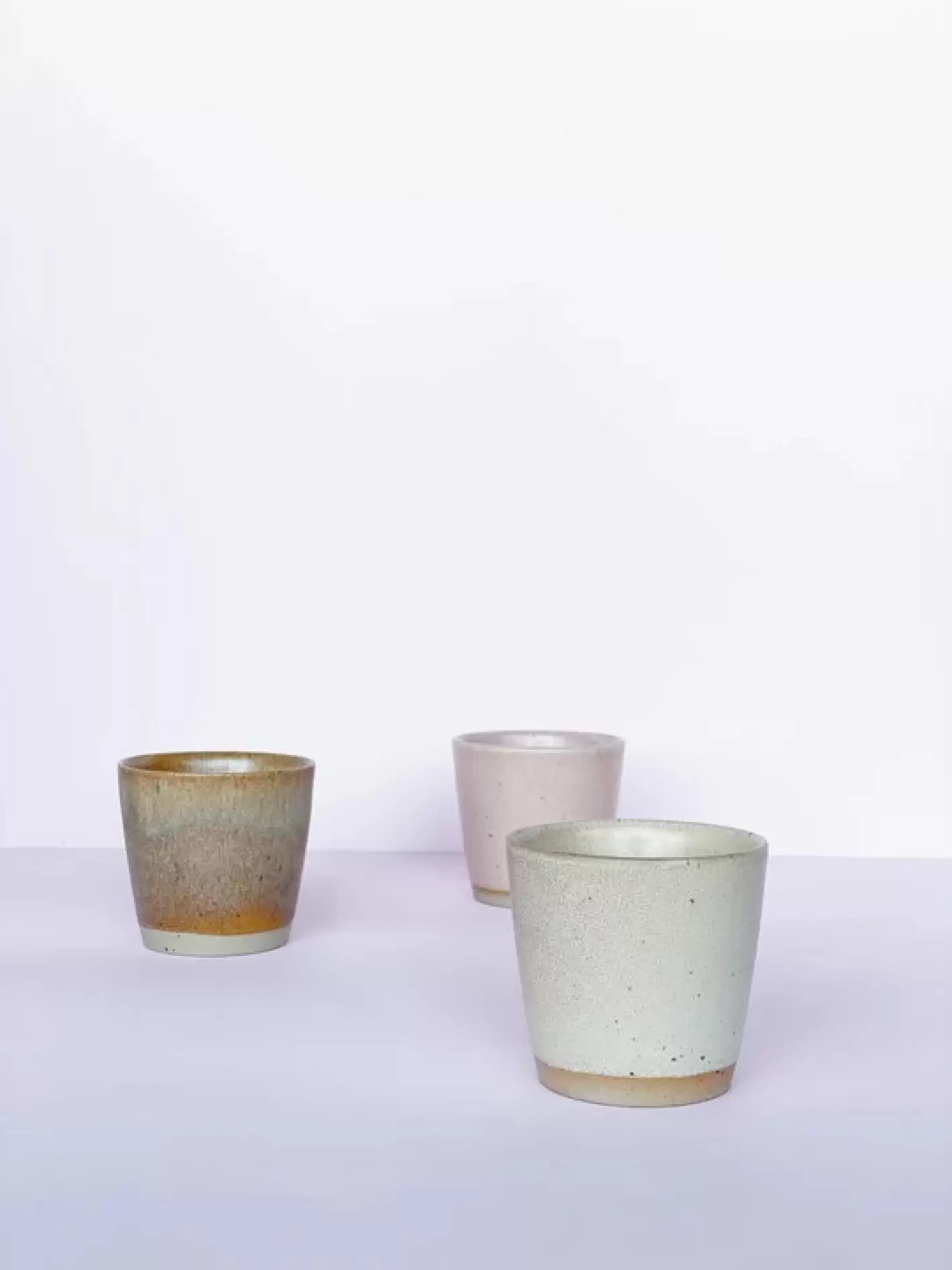 Bornholms Keramikfabrik har håndplukket et sæt 3 Ø-kopper med inspiration fra Bornholms kystlinje med farverne fra stranden, sandet og morgenhimlens blide sollys.