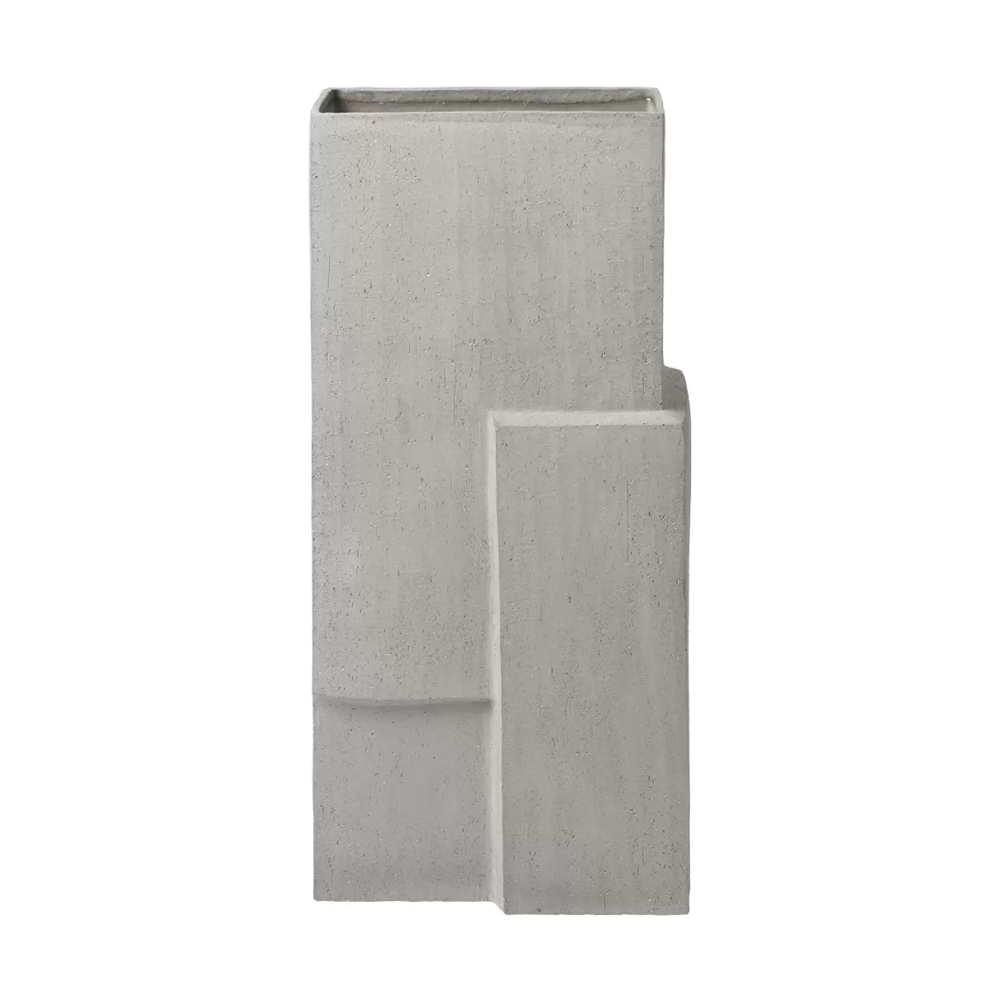 en ru betonlignende overflade gør at vasen på afstand, fremstår som en massiv sten- eller klippeformation.