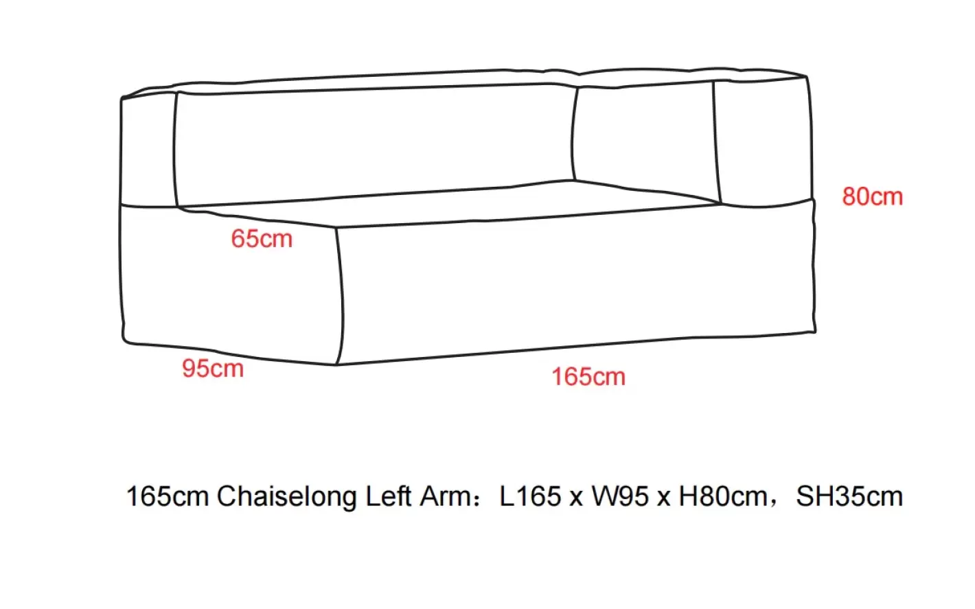 Mål: L: 165 x B: 95 x H: 80 cm. Siddehøjde: 35 cm.