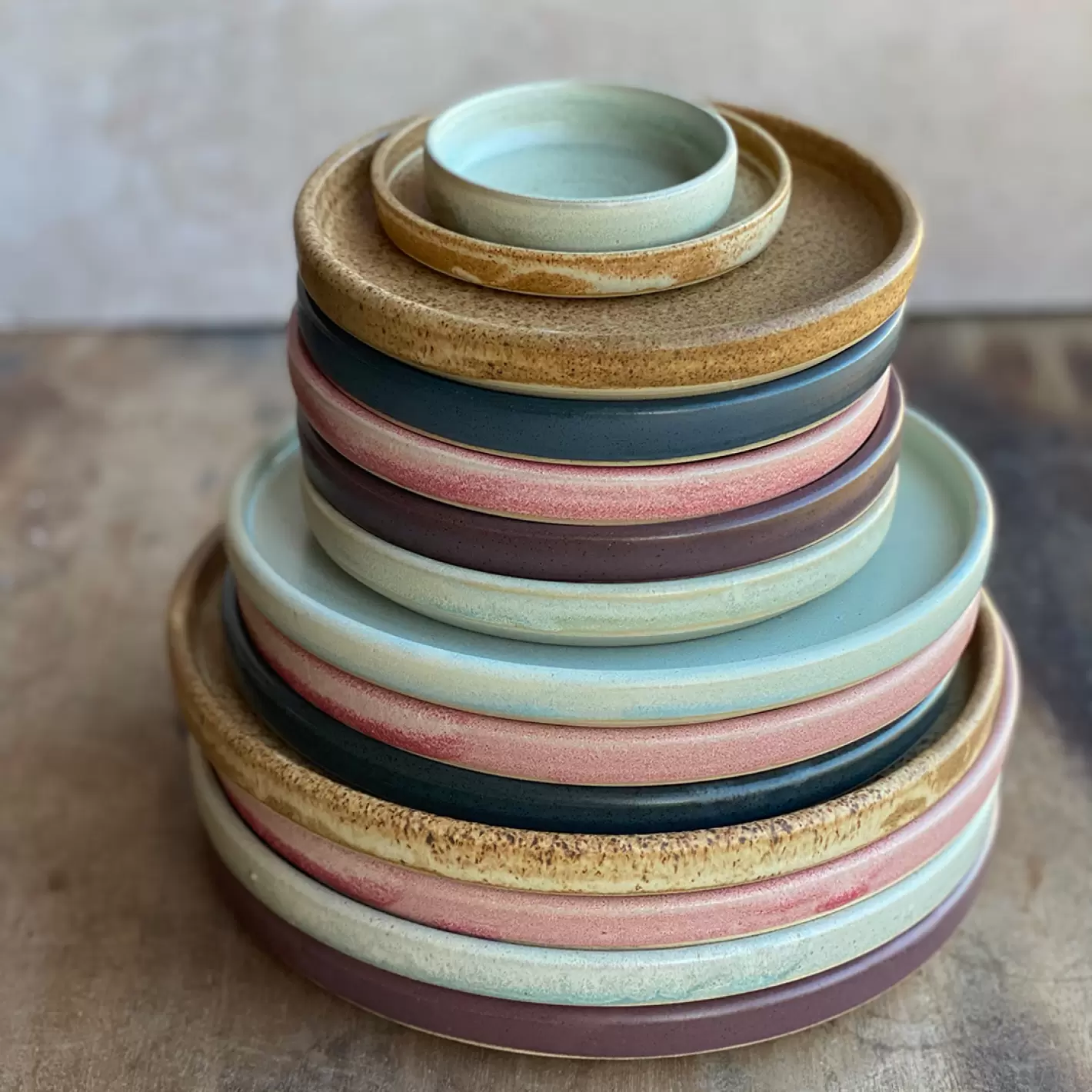 Denne udgave af Jule Damhus' hånddrejede og håndglaserede tallerkener af stentøj er den mindste i serien, og har en størrelse der passer perfekt til små serveringer, som sidetallerken og som underkop. Hver tallerken er unik, og vil derfor variere i både størrelse og nuance og hver især vil de fremstå med et helt eget udtryk.