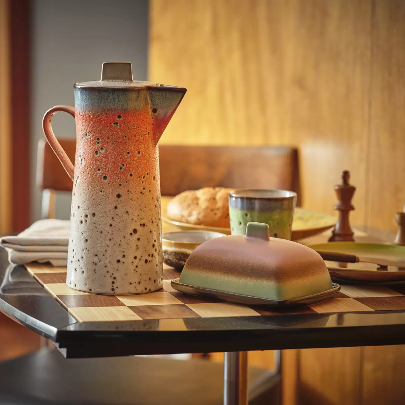 HK Living står bag denne skønne smørskål fra den populære 70'er-serie, og man bliver da næsten helt nostalgisk, når man ser de glade farvekombinationer. Smørskålen passer perfekt til den gode danske Lurpak, og samtidig giver den masser af liv og farve på spisebordet.