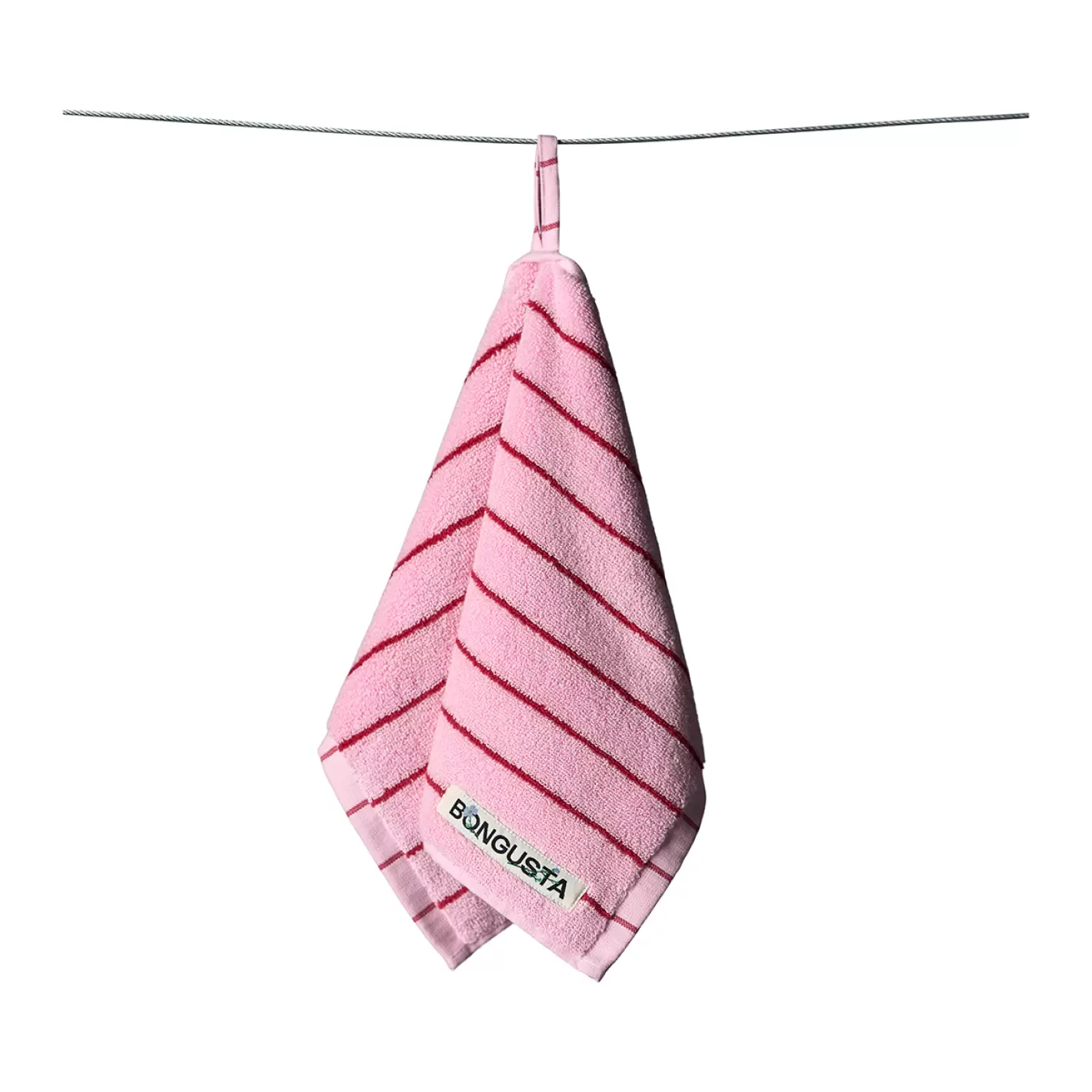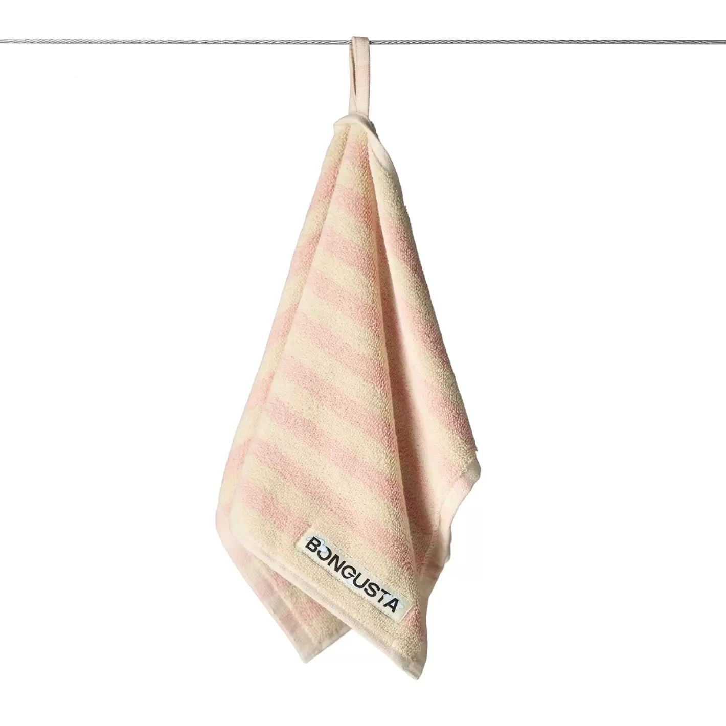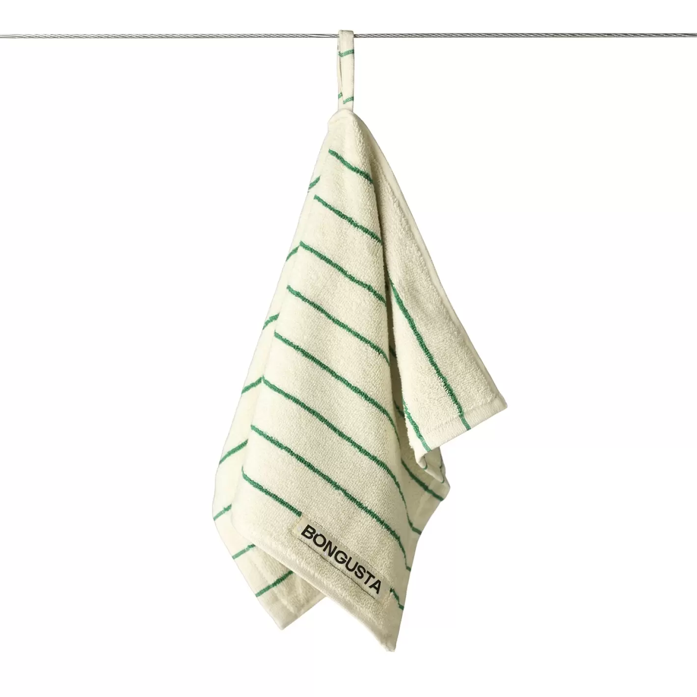 Eventuelle lange tråde/loops i håndklædet skal du ikke trække i, da det vil lave striber i vævningen - klip dem blot af med en saks. De enkelte loops er hæftet på bagsiden, så afklipning får ikke vævningen til at 'løbe'.