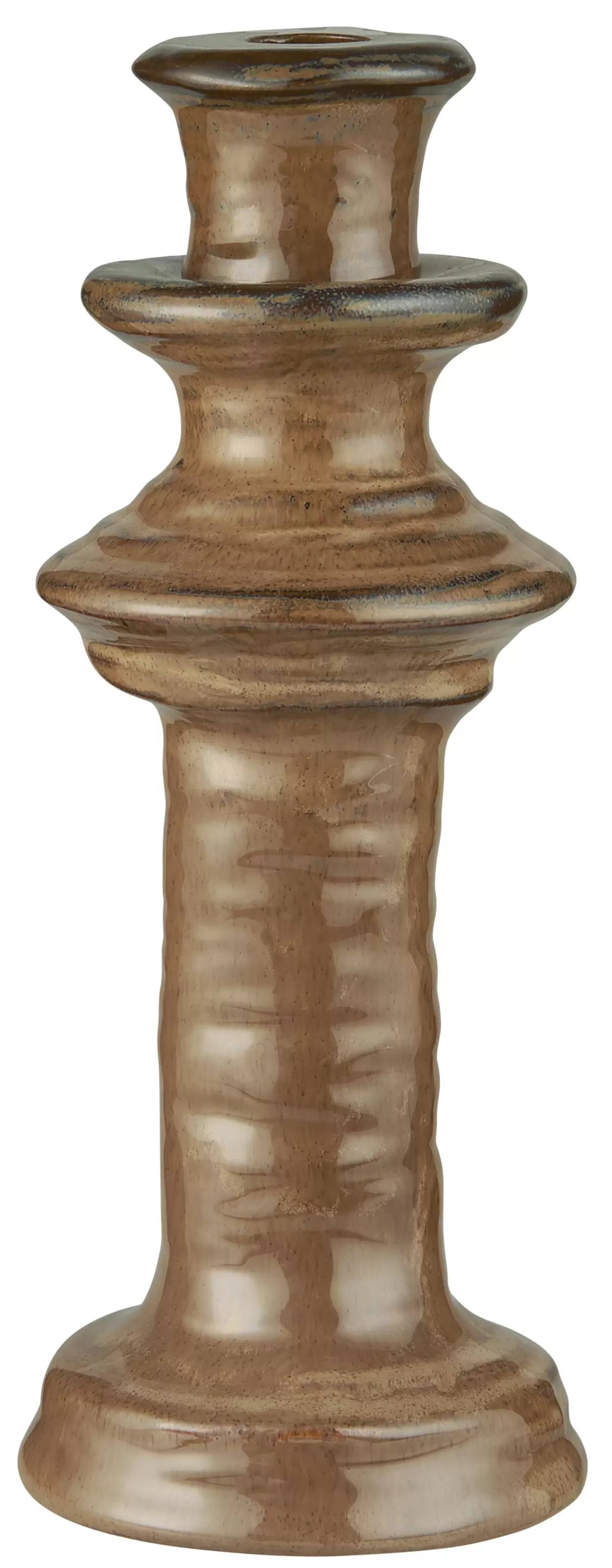 Stagen er fremstillet af stentøj med rustik brun glasur, og passer til almindelige kronelys med en diameter på 2,2 cm.