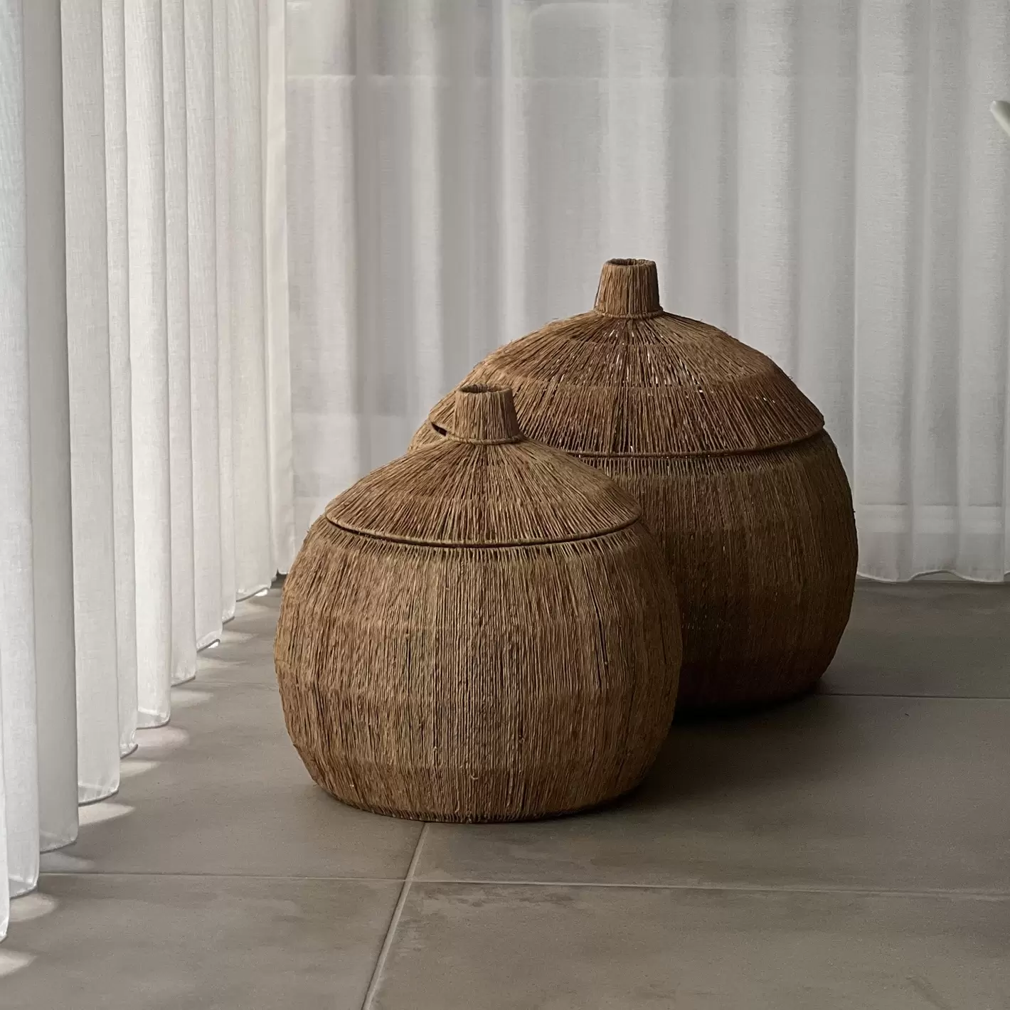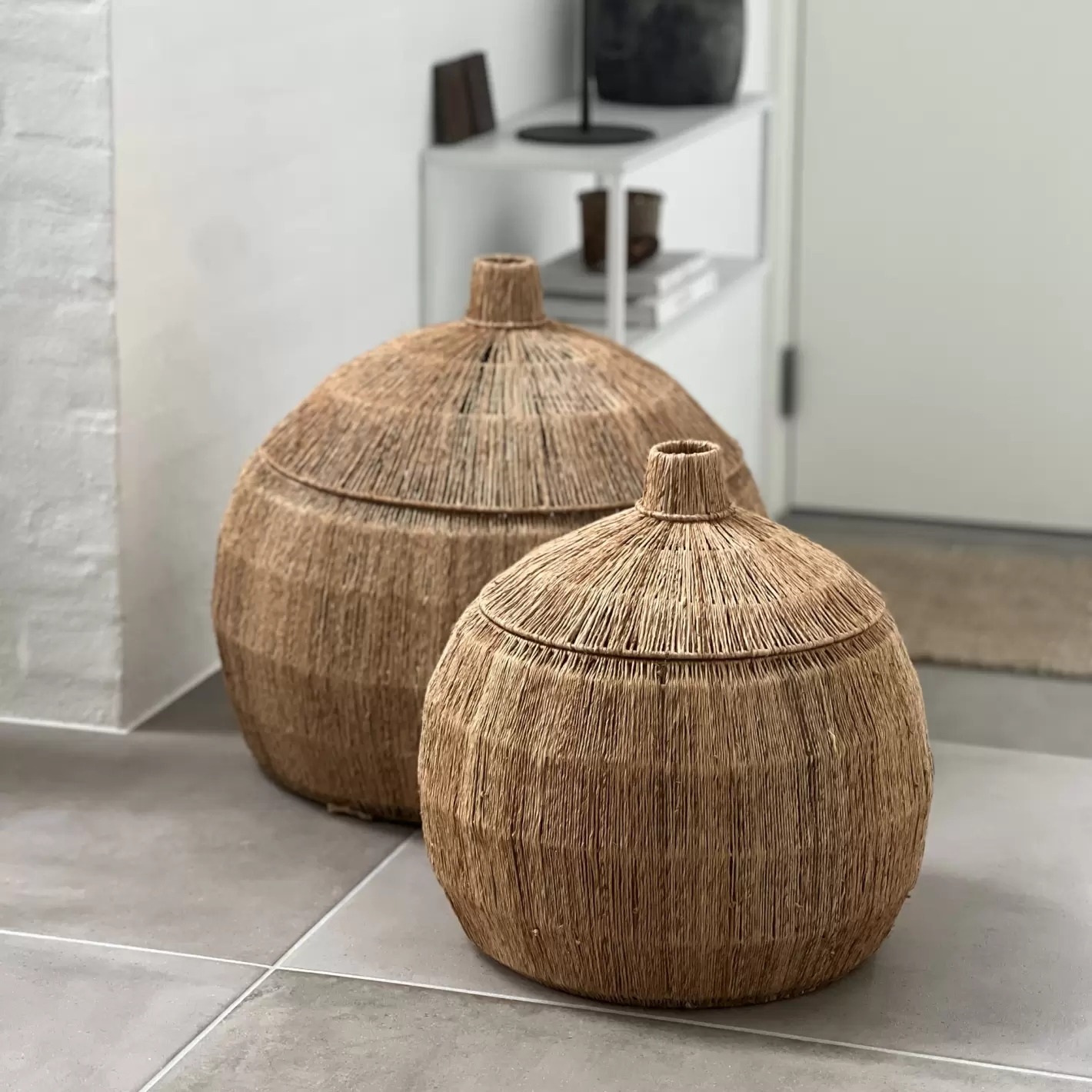 Kurvesættet med låg skaber en ro for øjet. De smukke håndlavede opbevaringskurve fra Tell Me More med masser af plads til skjult opbevaring af både vasketøj, puder, plaider og børnenes legetøj. Kurven har låg der på fineste vis skjuler dens indhold.