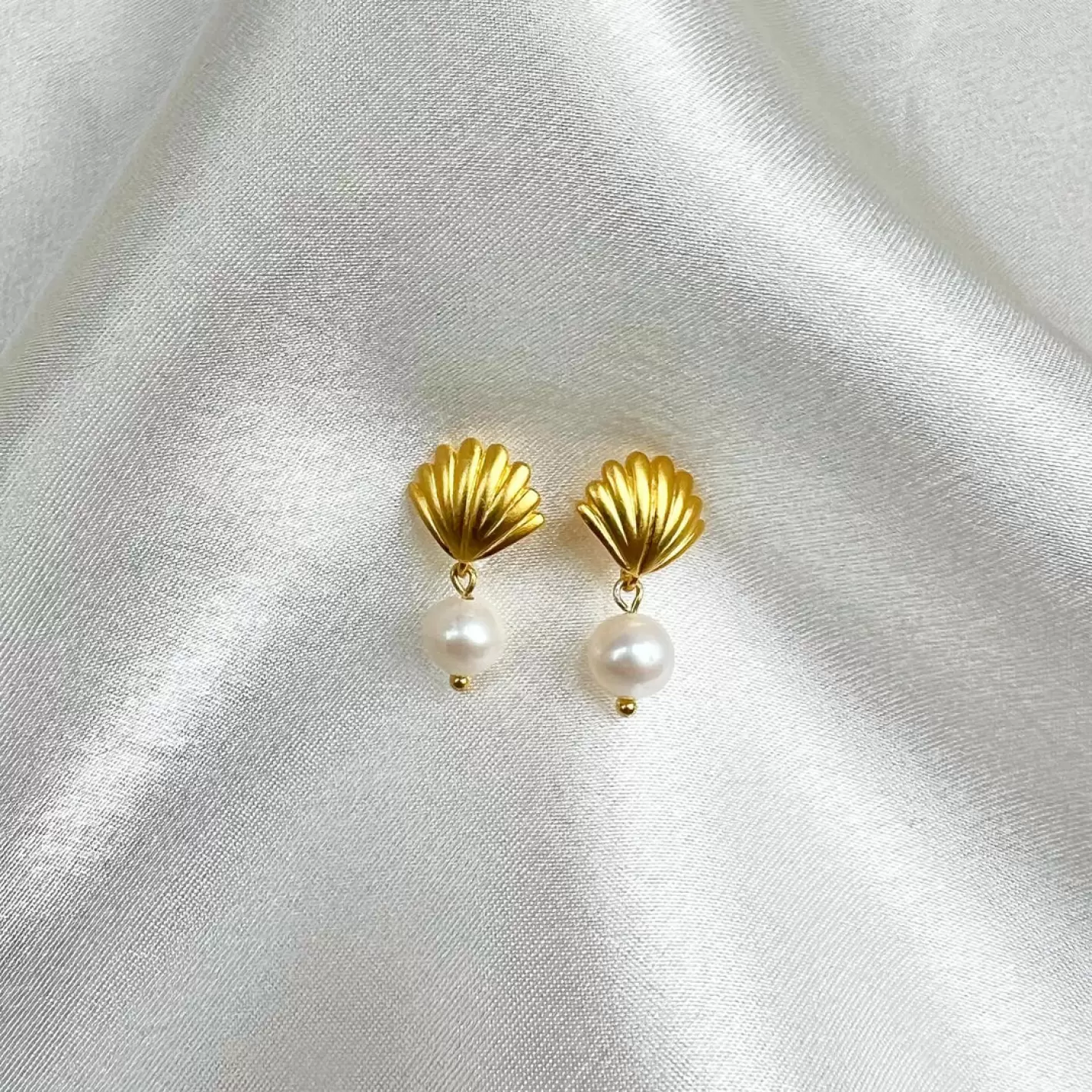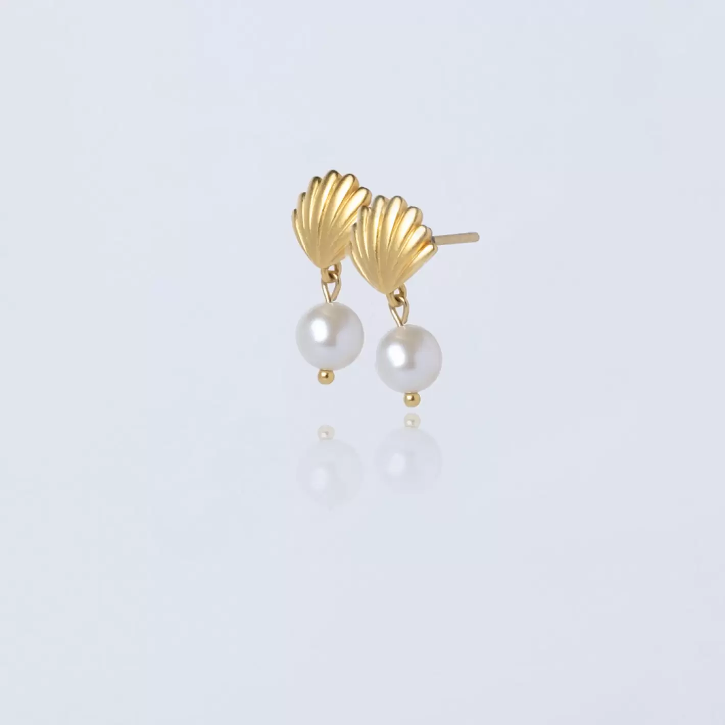 De sødeste små håndlavede øreringe fremstillet af 925 sterlingsølv designet som en fin lille muslingeskal med et enkelt vedhæng af en rund ferskvandsperle.