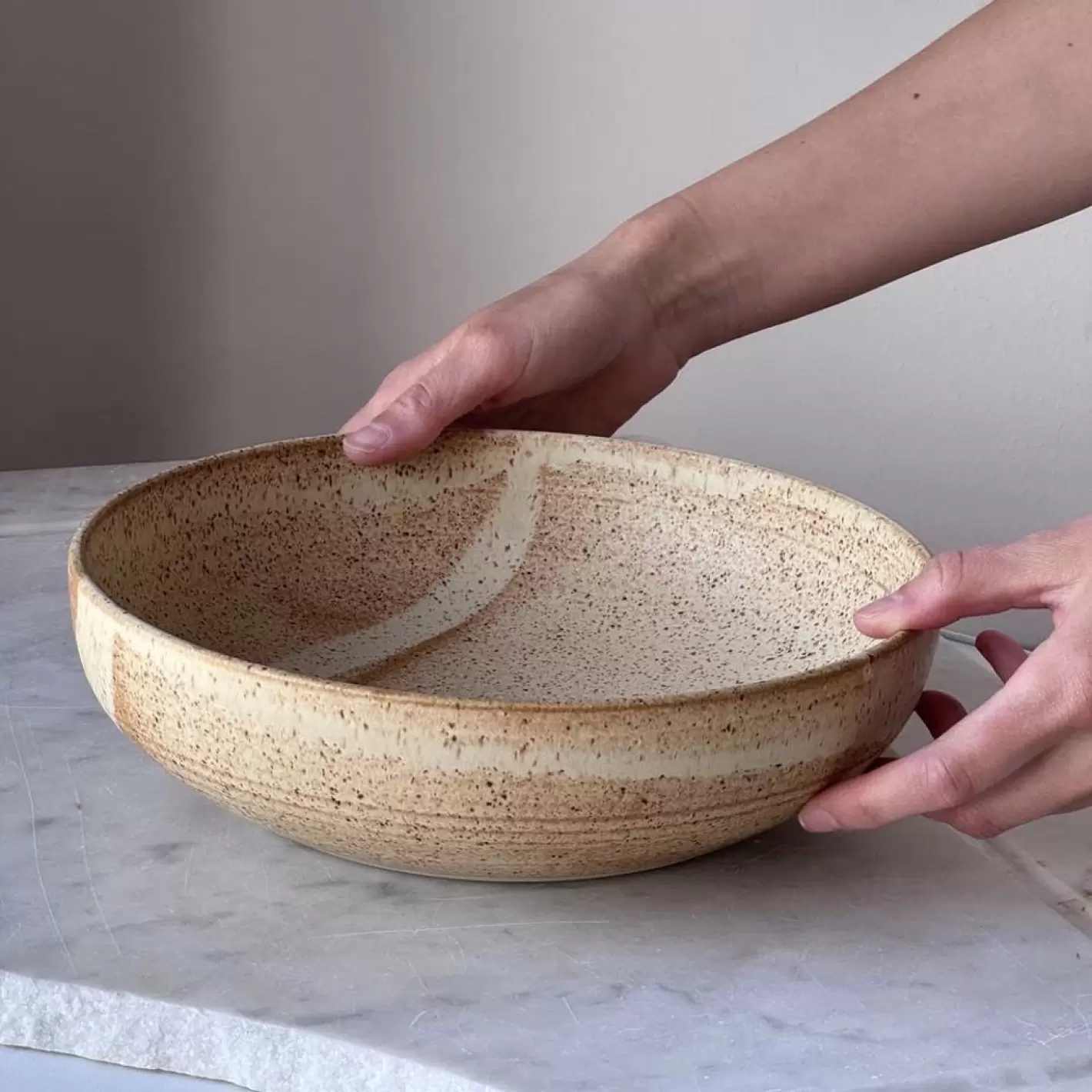 Julies fade er unika, og alle vil fremstå med sit helt eget udtryk. Det smukke store fad er hånddrejet og håndglaseret, så du vil opleve, at der forekommer variationer i både størrelse og farve. Brug fadet til grønne salater, som fad til friske frugter eller lad det blot stå som et dekorativt element i indretningen.