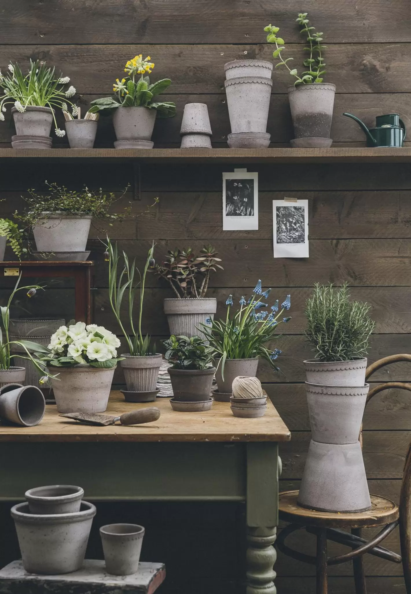 Potterne kan bruges både ude og inde, de er lavet af ler af høj kvalitet, som er brændt ved meget høje temperaturer, og underskålene er diskret behandlet med silikone, så de er helt vandtætte.