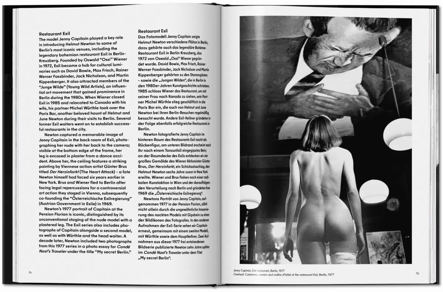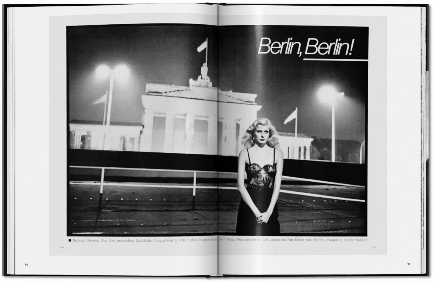 Bogen rummer Newtons mest ikoniske Berlin-billeder, såvel som mange ukendte optagelser fra 1930'erne til 00'erne - natteliv i superseje klubber og restauranter, nøgenportrætter på de pensionater, han kendte fra sin ungdom, og Berlins filmscene med Hanna Schygulla og Wim Wenders ved Berlinmuren, John Malkovich og David Bowie.