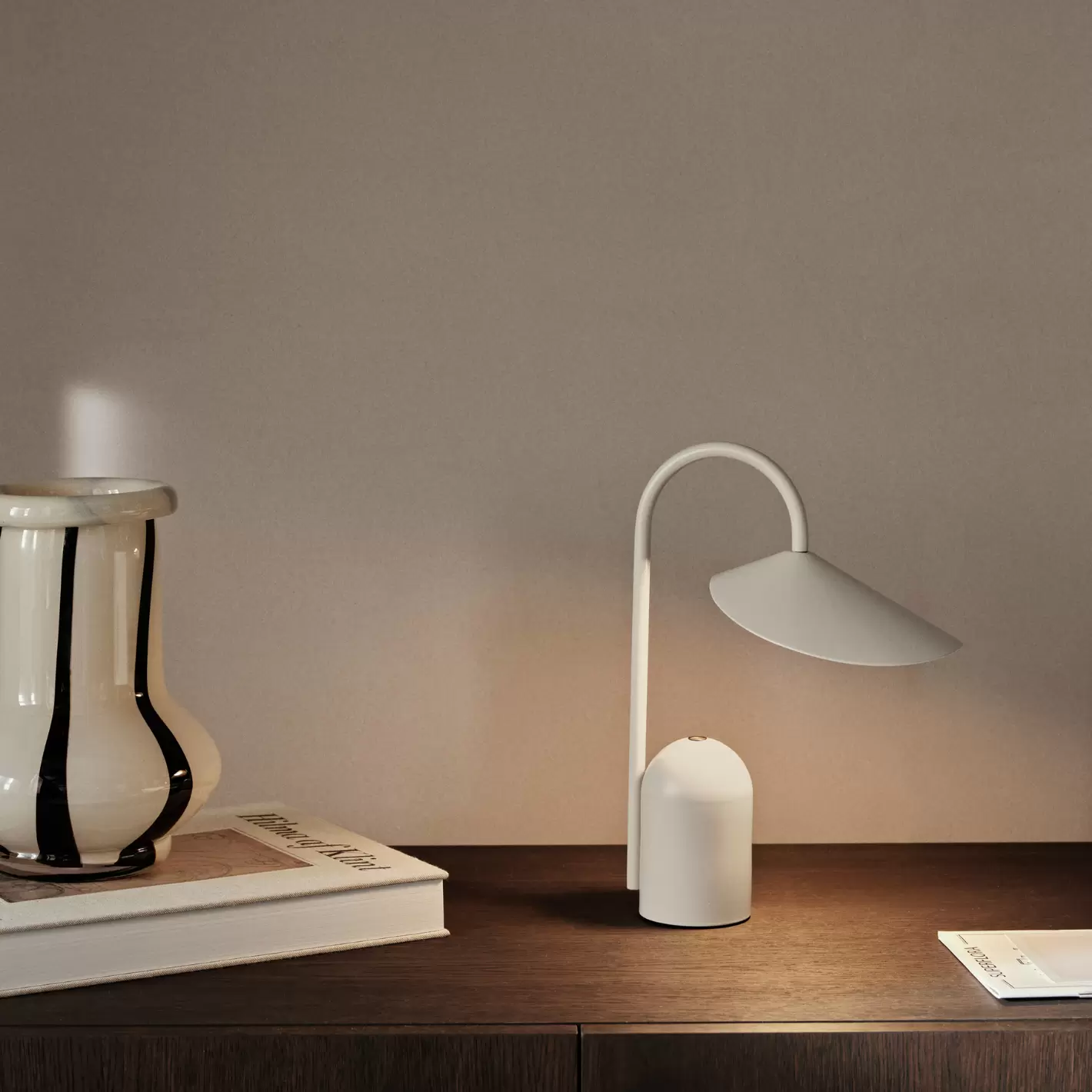 Den populære lampeserie Arum fås nu også i en transportabel udgave - her i Ferms signaturfarve cashmere - så du kan tage lampen med dig og skabe hyggelig stemning overalt i boligen.