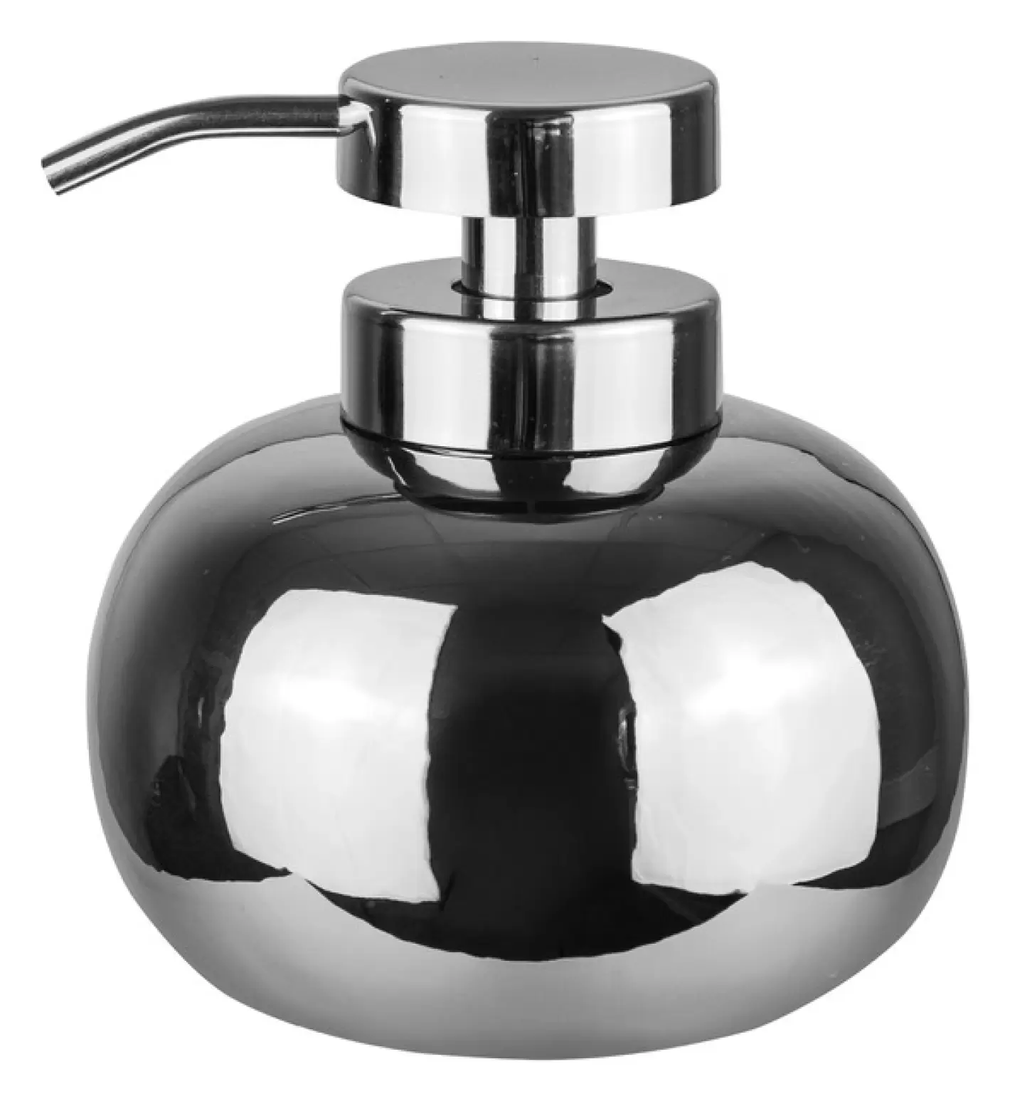 Sæbedispenseren er fremstillet af krombelagt keramik med en matchende pumpe også i krom - en sæbedispenser som faktisk er velegnet til både sæbe, lotion og opvaskemiddel.