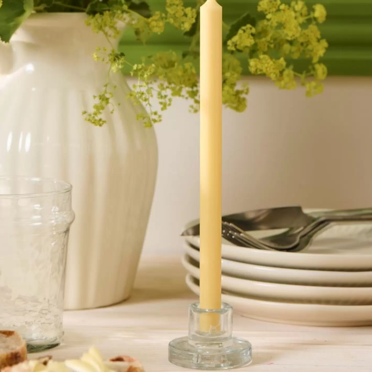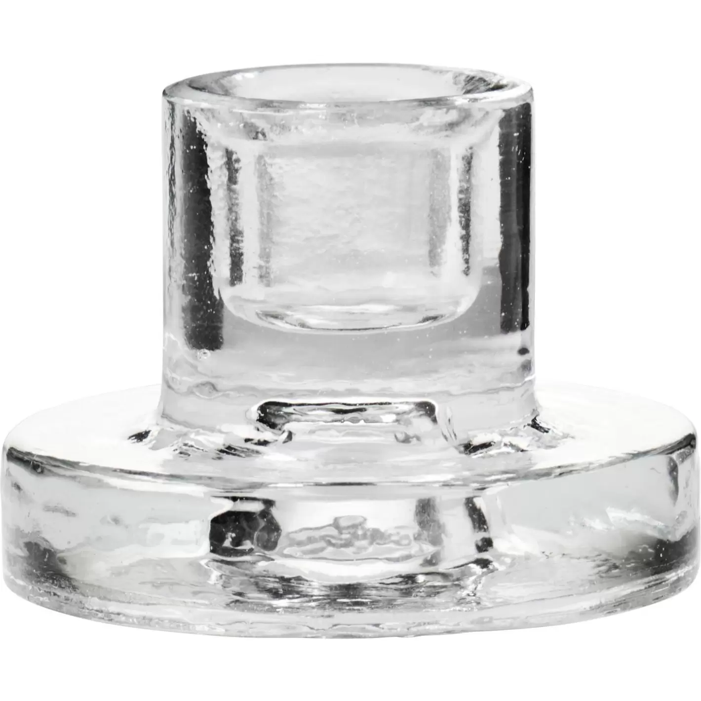 Helt enkel lille lysestage af klart glas til kertelys og juletræslys med en diameter på 1,3 cm.