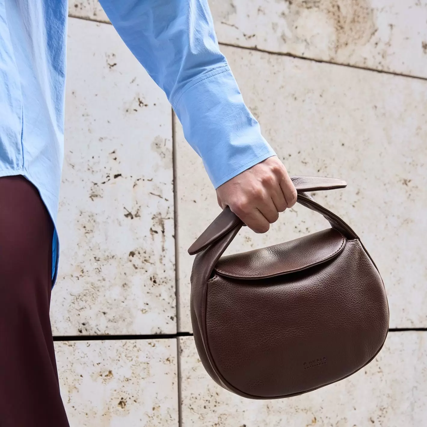 Crossbody Coco Croissant Soft Grain Leather, Chokolate fra O My Bag