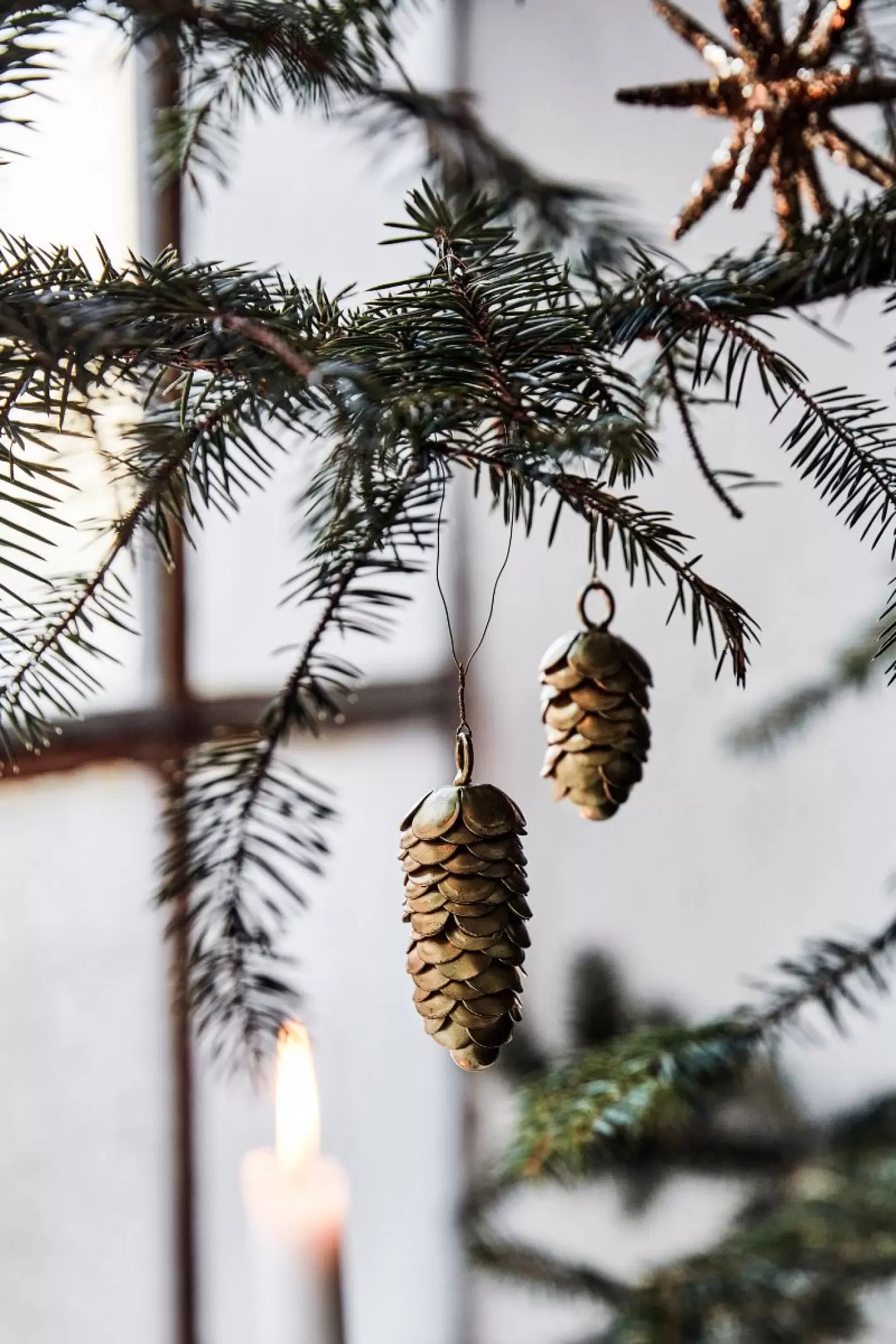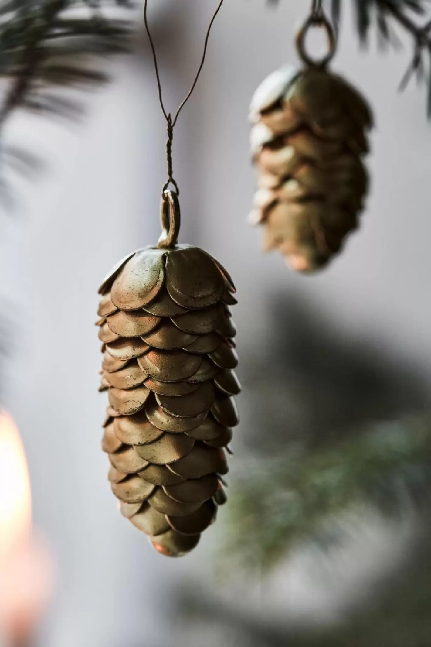 2 stk. Jule ornamenter, Kogle guldfarve