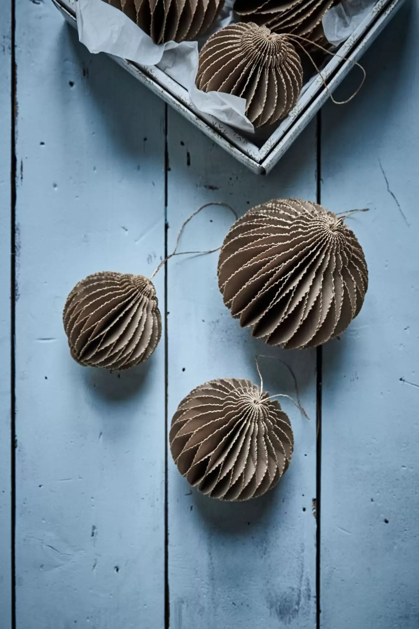 Lad julestemningen brede sig når du pynter juletræet eller en gren fra haven med disse fine papirornamenter i en varm brun nuance, hvor kanterne har fået et drys af gyldent glimmer.