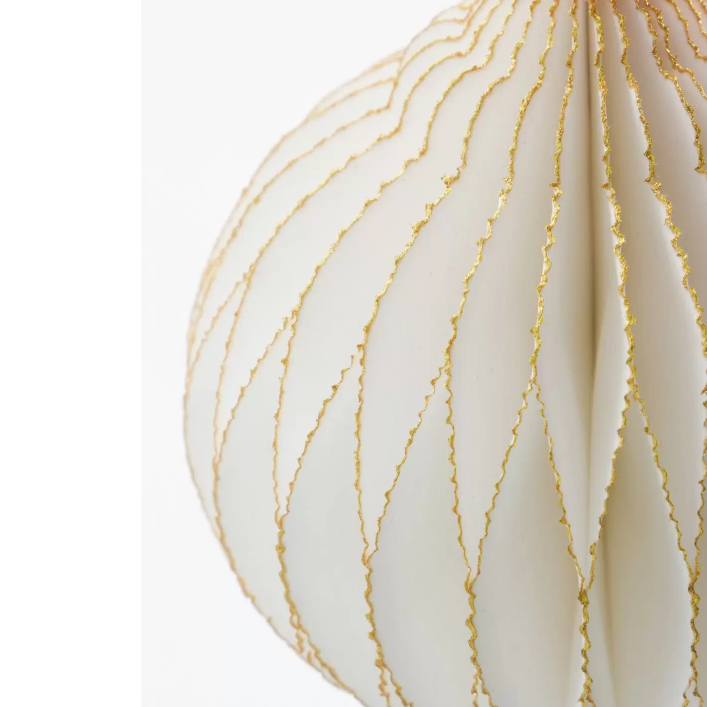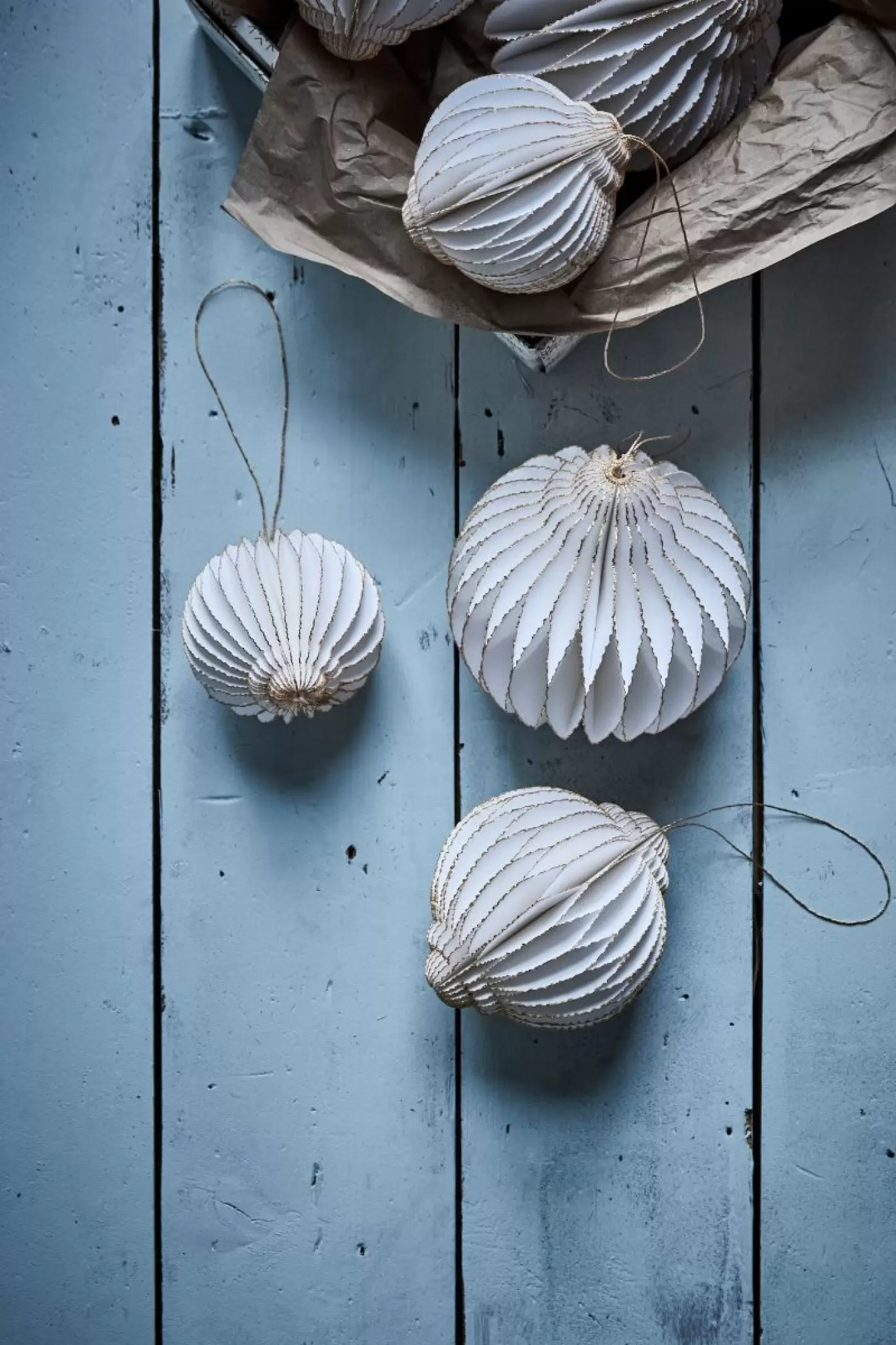 Lad julestemningen brede sig når du pynter juletræet eller en gren fra haven med disse fine ornamenter af råhvidt papir, hvor kanterne har fået et drys af gyldent glimmer.