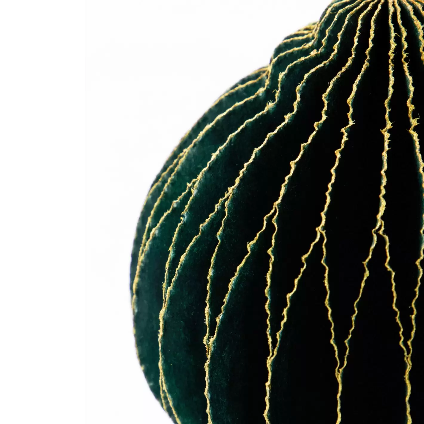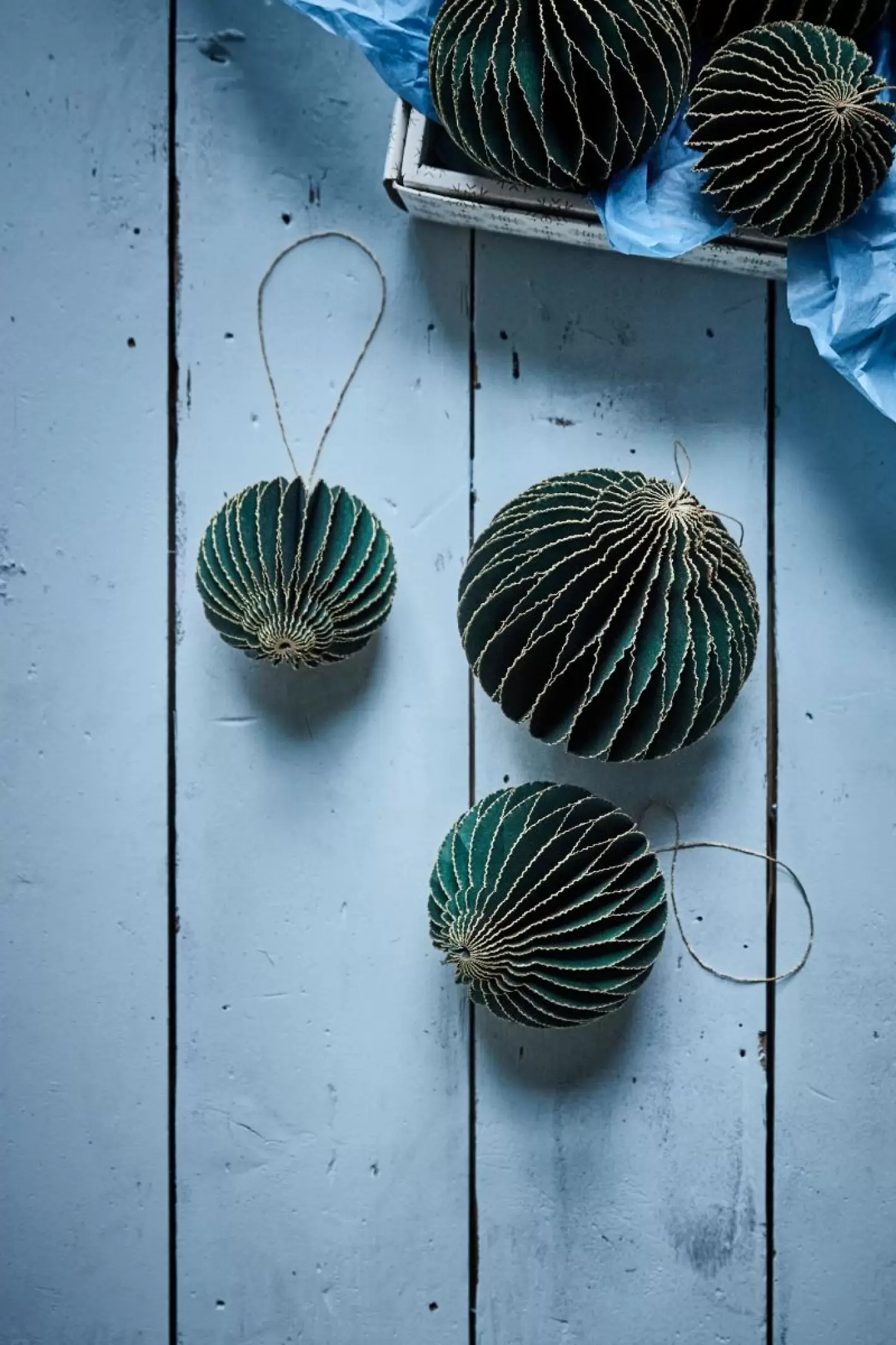 Lad julestemningen brede sig når du pynter juletræet eller en gren fra haven med disse fine ornamenter af grønt papir, hvor kanterne har fået et drys af gyldent glimmer.
