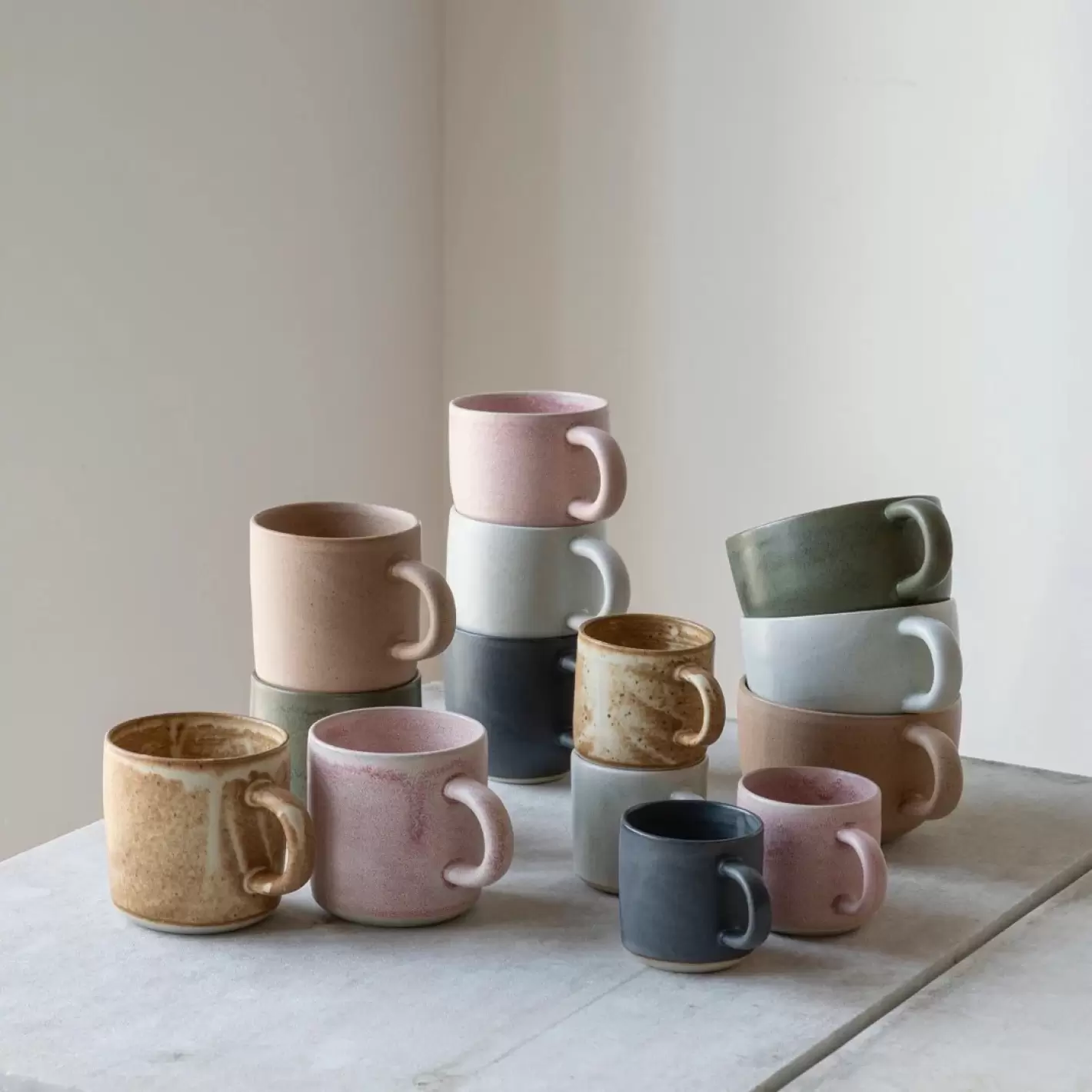 Rummelig hånddrejet og håndglaseret kop med hank til dig, der ønsker en god kop te, en stor kop kaffe eller varm chokolade med flødeskum. Koppens store overflade gør det desuden enkelt at lave smuk latte- art.