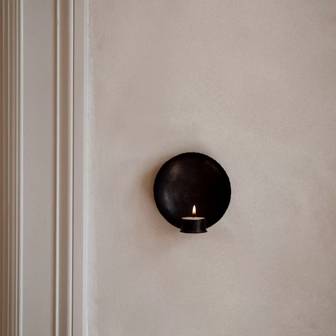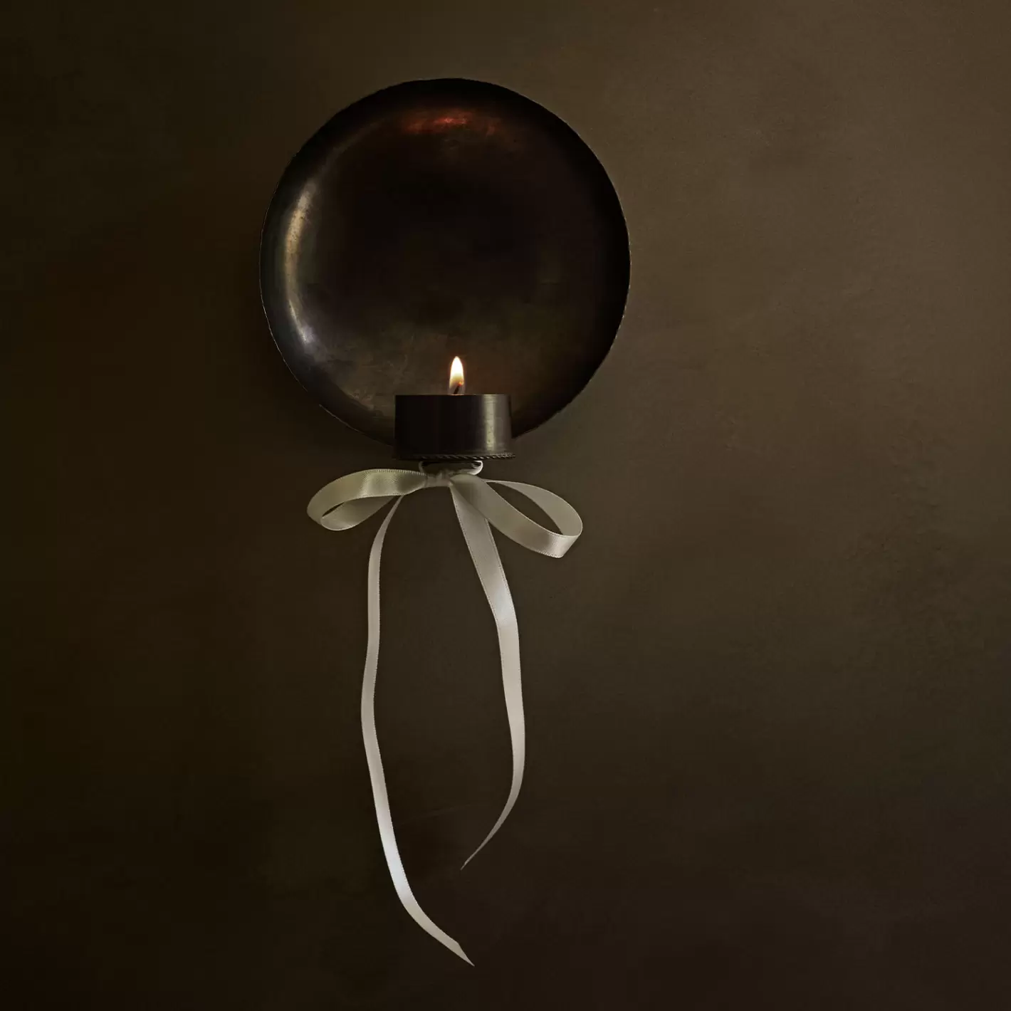 Væghængt lysestage, oxideret messing, dia. 13 cm