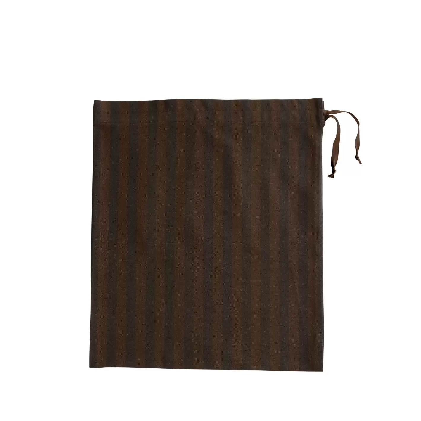 Sæt med fire stribede gaveposer i brune nuancer fremstillet af genanvendt bomuld til hurtig og nem indpakning af adventsgaverne - uden brug af engangspapir og tape. Poserne kan genbruges til samme formål år efter år, men er også anvendelige til opbevaring af sko eller som frugtposer.