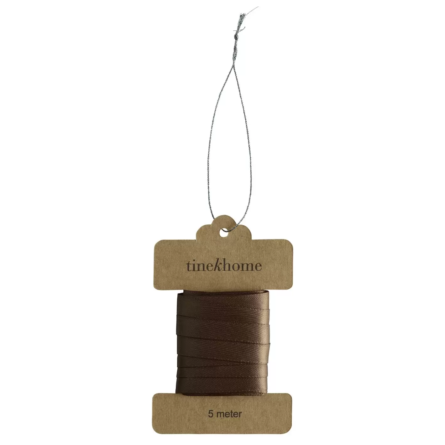 Smalt gavebånd af satin i den fineste gyldenbrune nuance som er perfekt til eksklusive gaveindpakninger og til sløjfer på julens dekorationer.