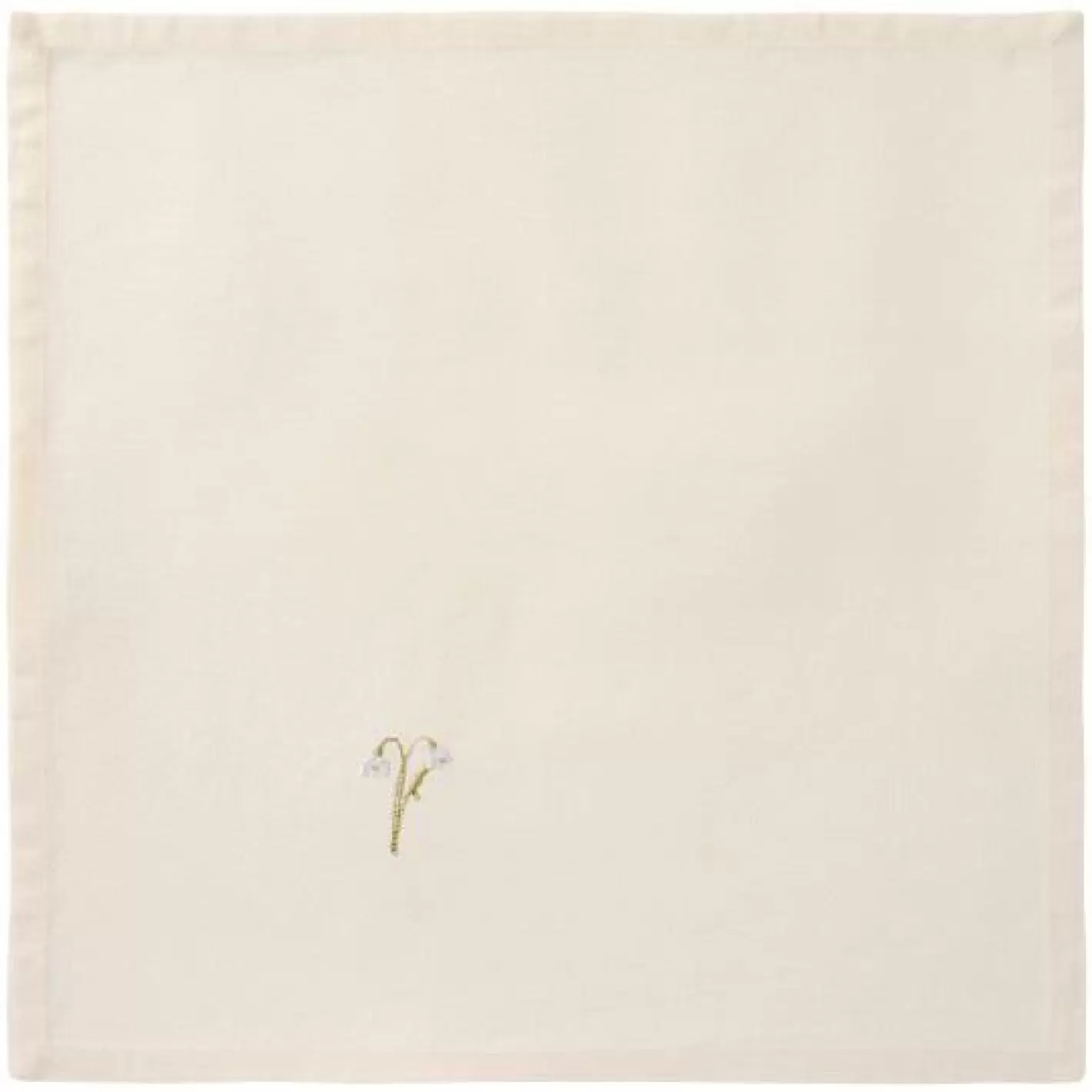 Pift middagsbordet op i den mørke vintertid med de fineste stofservietter som har motiv af en yndig vintergæk broderet på en helt lys cremefarvet baggrund.