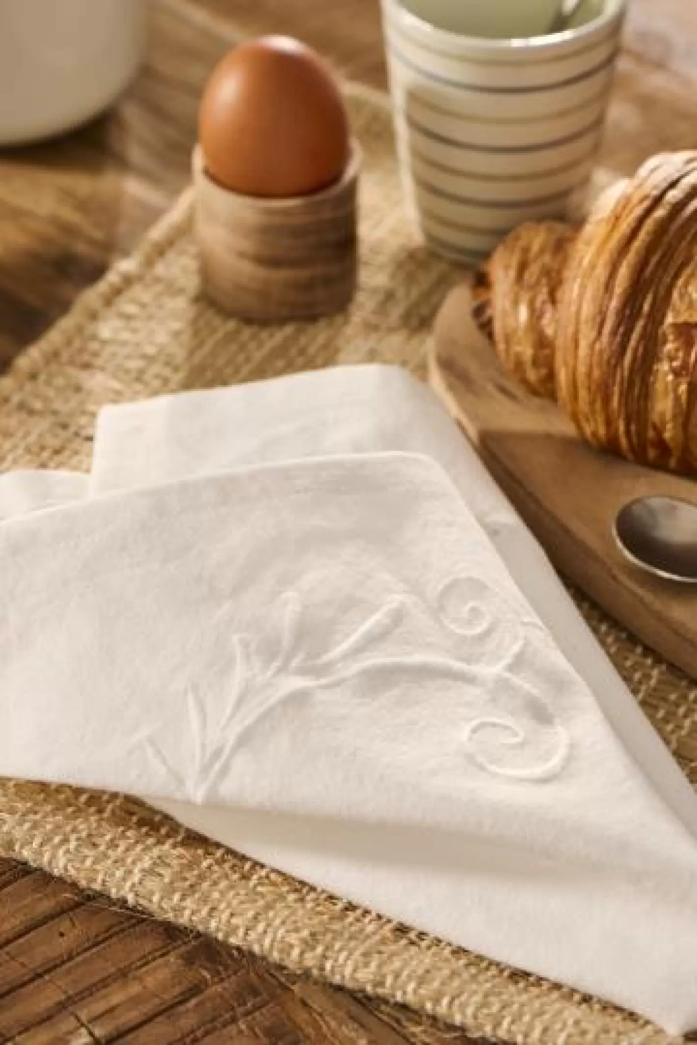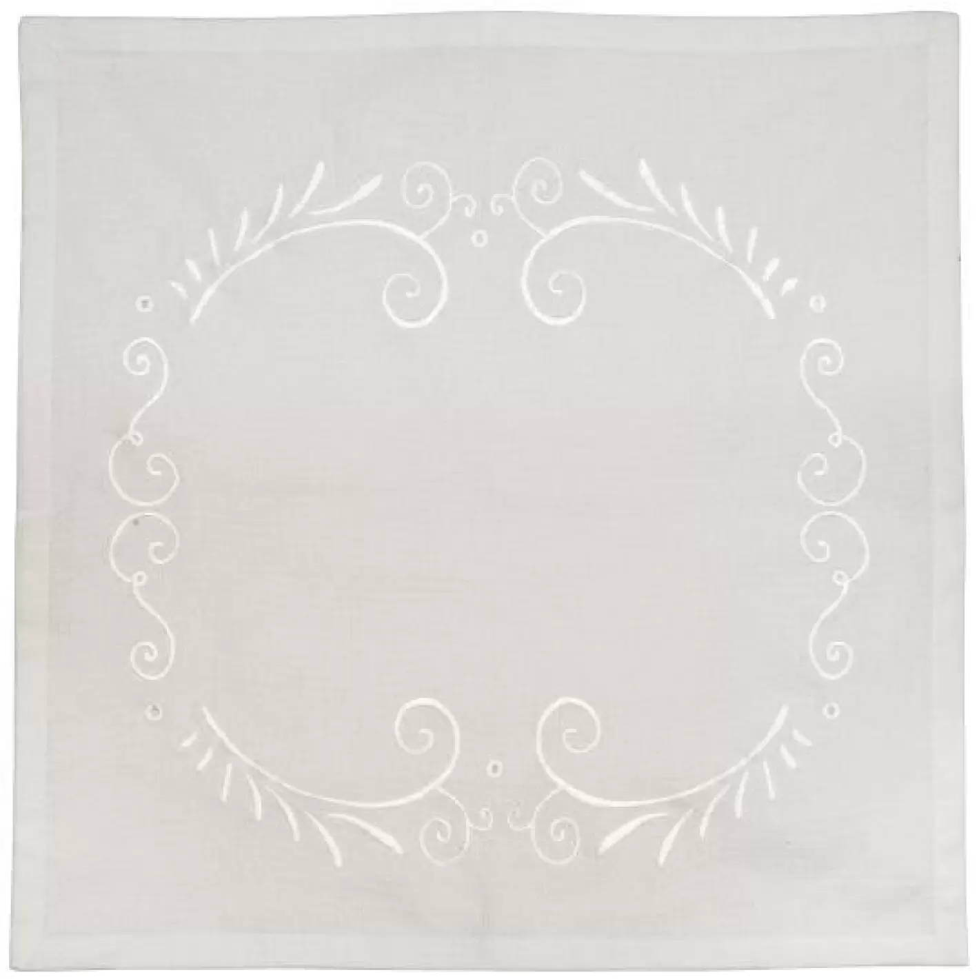Klassisk hvid stofserviet med et elegant hvidt broderi - en tidløs detalje som giver borddækningen et raffineret udtryk, og er perfekt til både hverdag og festlige lejligheder.