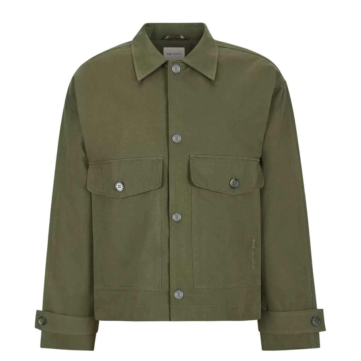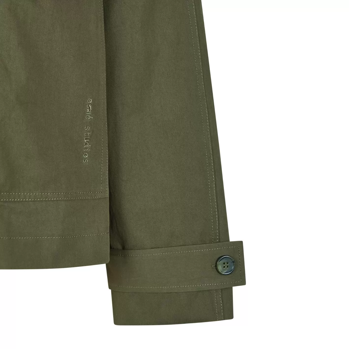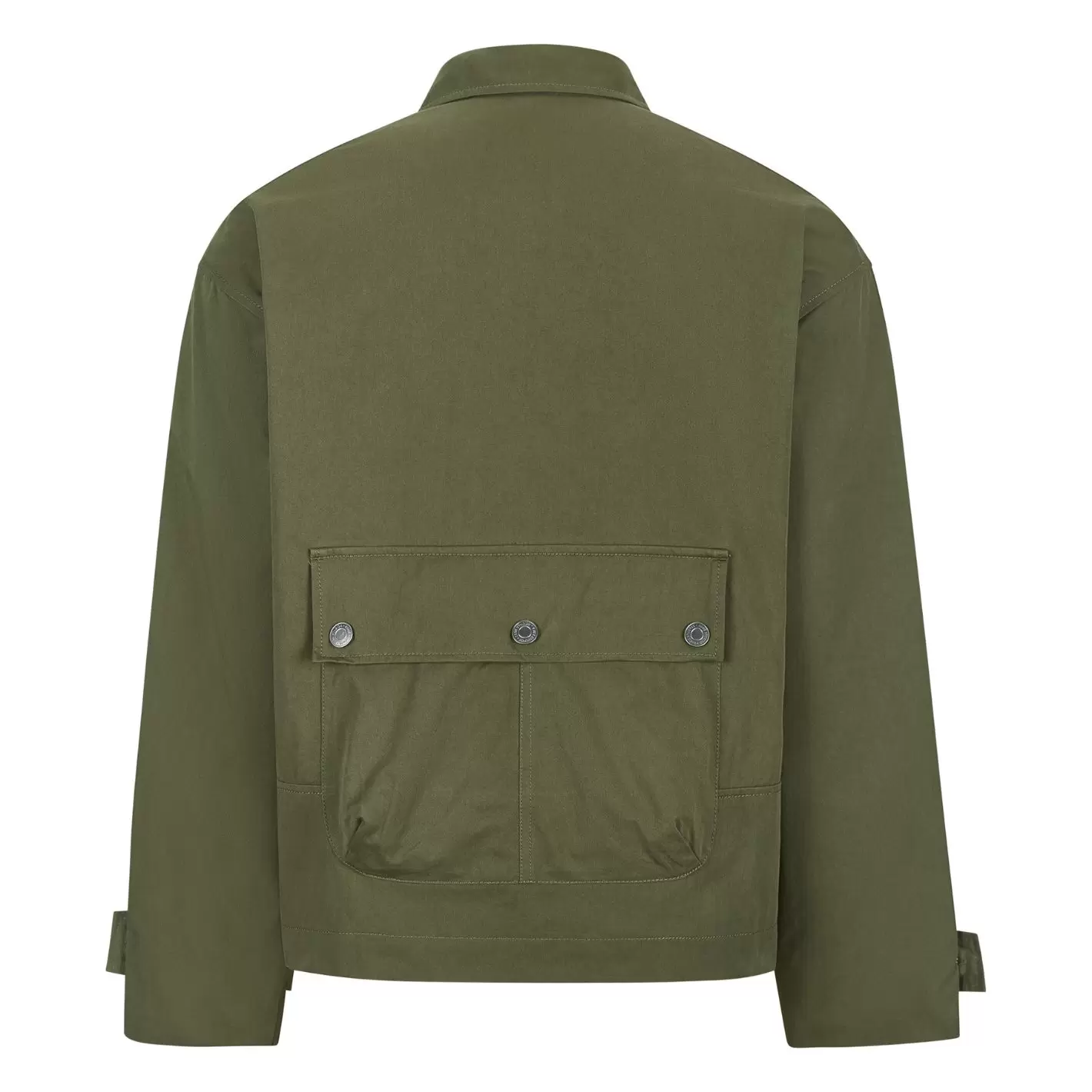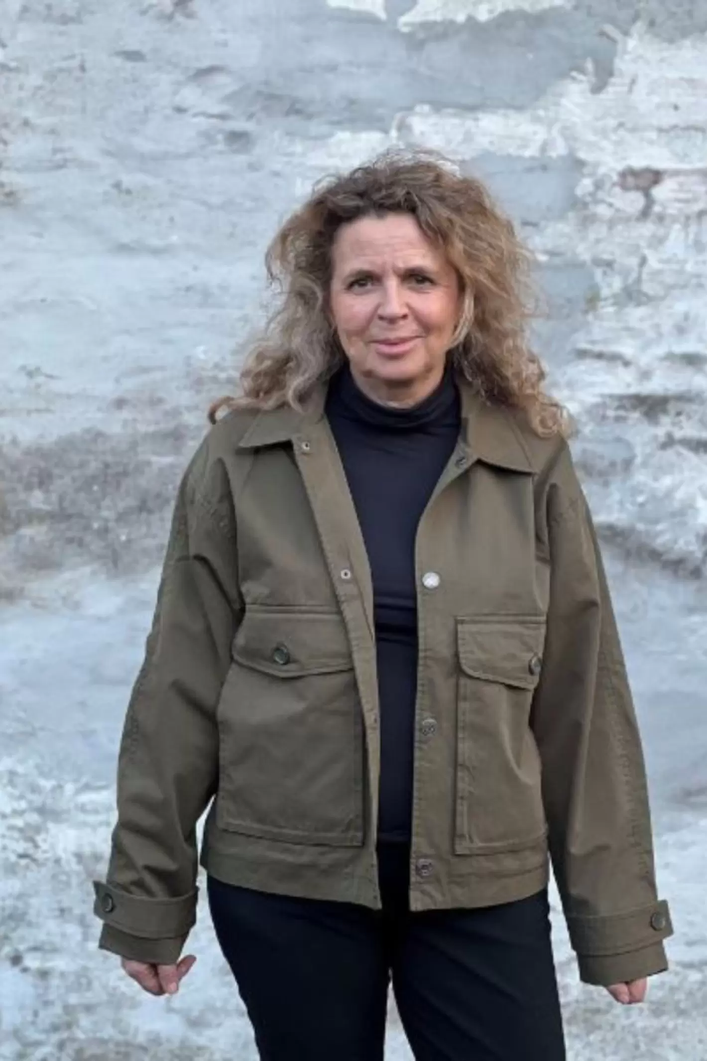 Kort jakke med løs pasform designet med 2 dybe lommer på forsiden og en helt særlig og super flot detalje - nemlig en stor lomme på tværs af ryggen med klap og knaplukning. Jakken er fremstillet af et 100% GOTS certificeret økologisk bomuldstekstil i en smuk grøn nuance.
