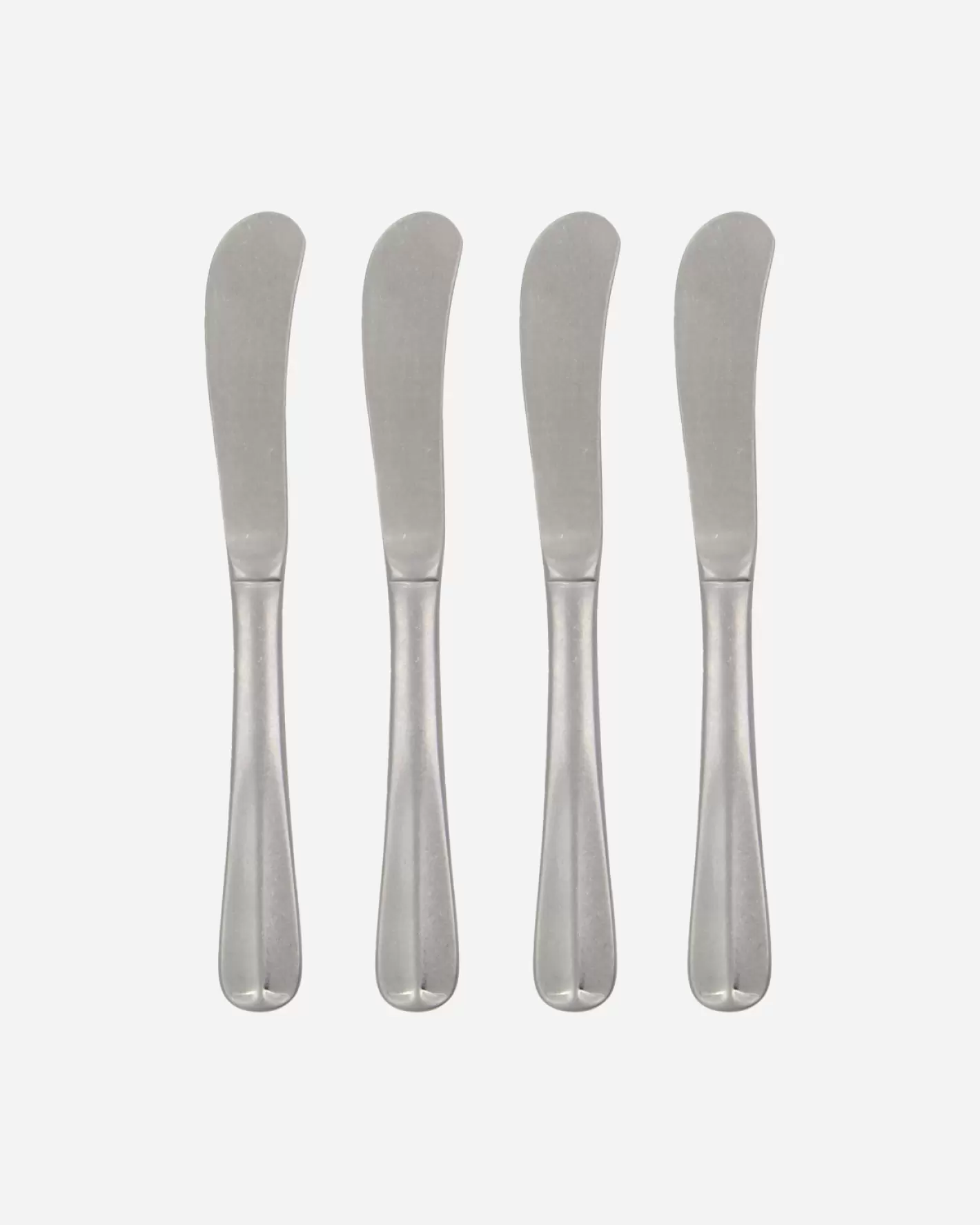 Sæt med 4 små smørknive af mat rustfrit stål med rene linjer og et minimalistisk udtryk - et perfekt sæt til smør, marmelade og bløde oste på morgenbordet eller til tapas.