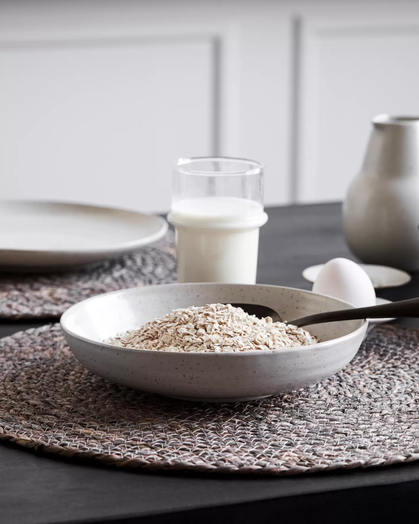 Serien Pion er fremstillet af stentøj, og den matte råhvide glasur med små grå nister i overfladen giver stellet et på en gang uformelt og forfinet udtryk.