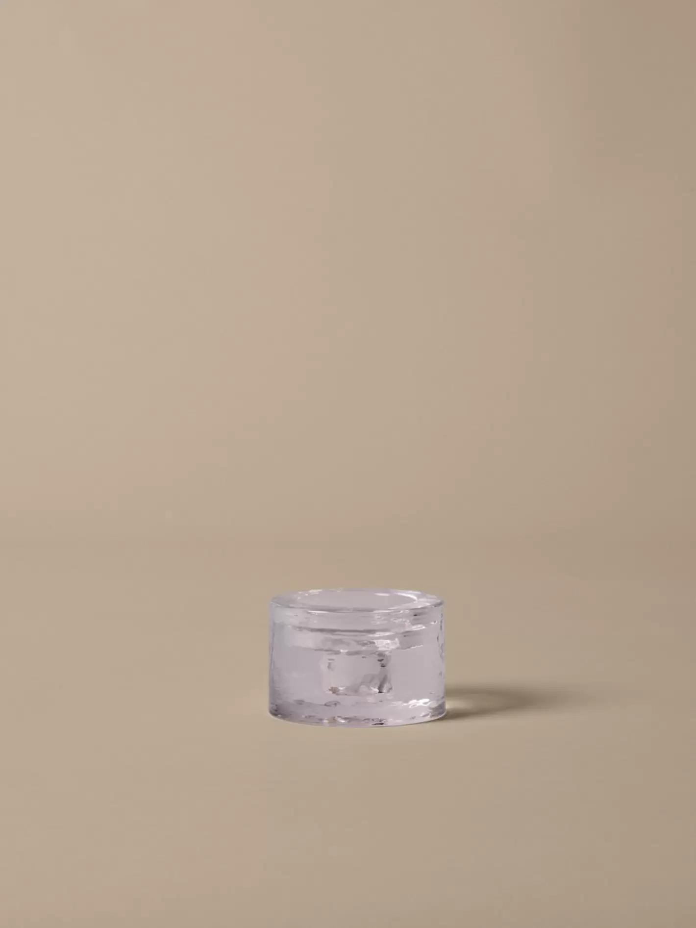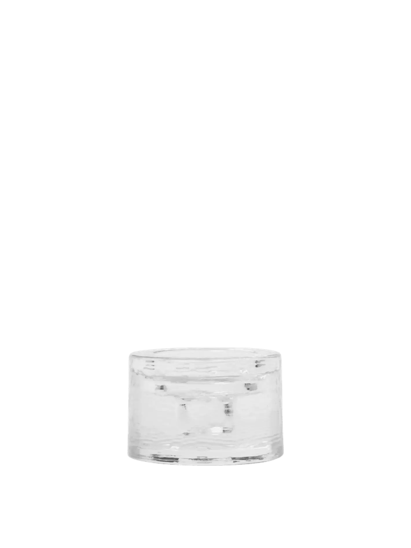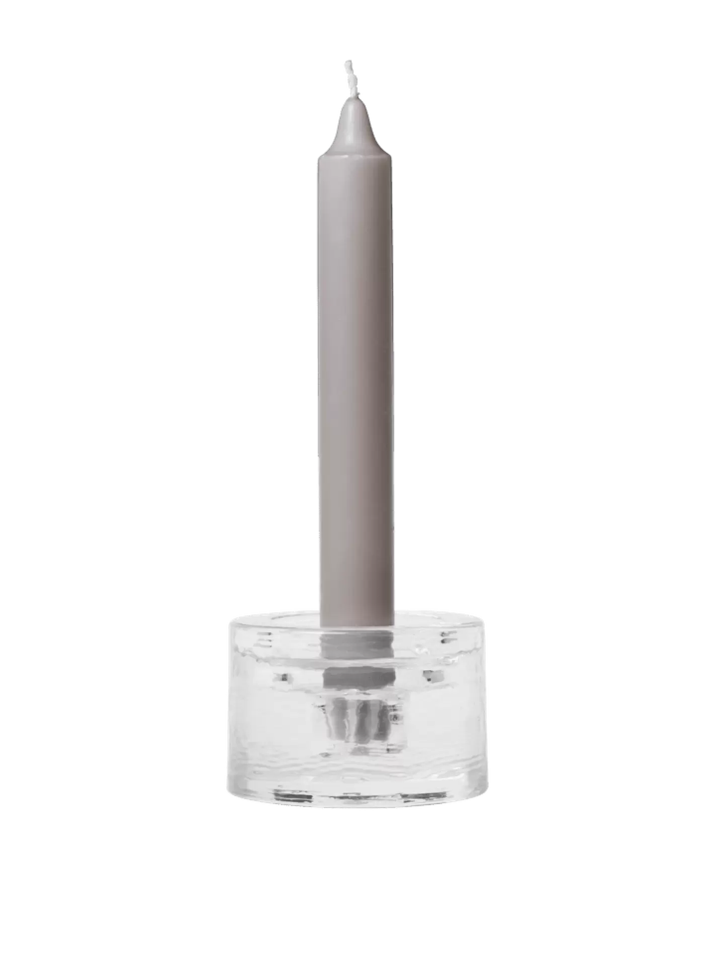 Denne multifunktionelle lysestage fra serien Gradia er fremstillet af massivt håndpresset glas med en taktil ujævn overflade.