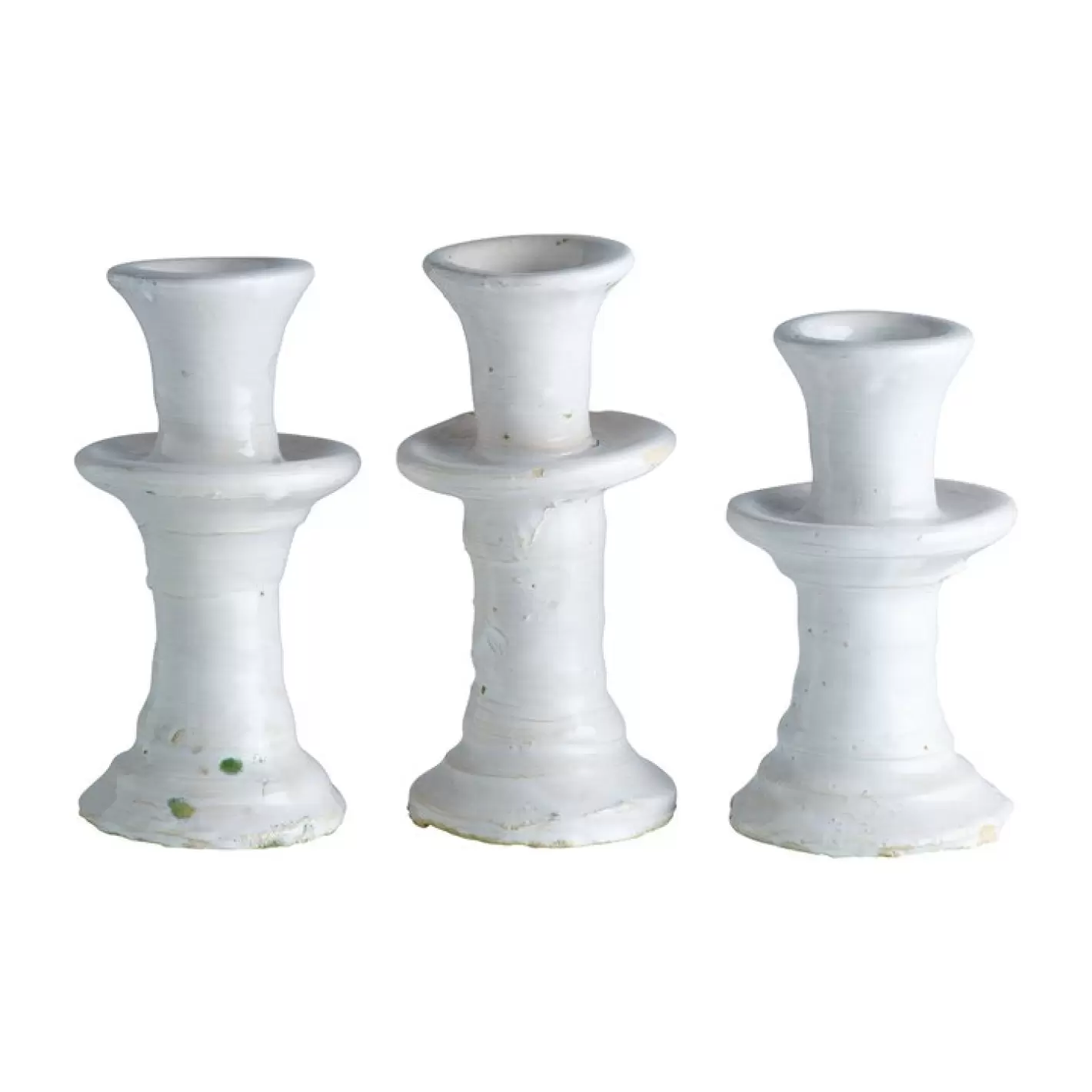 Lysestage, rustikt håndlavet keramik, H15 cm, hvid - NB 1 stk.