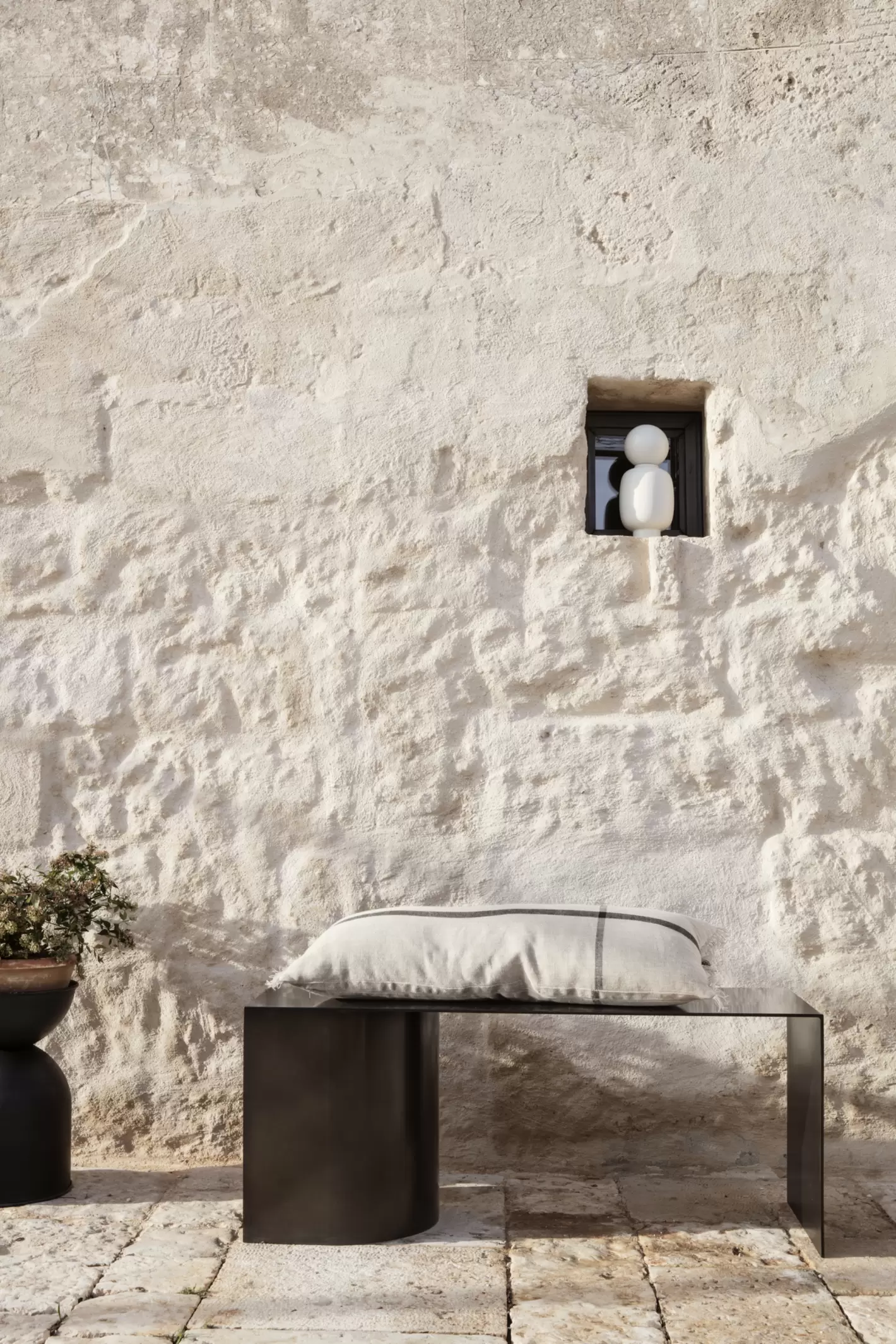 Hourglass kan bruges både ude og inde, den er fremstillet af matsort pulverlakeret metal, og i samlingen mellem de to krukkedele sidder en gummiprop, som man afmonterer, hvis krukken skal bruges udendørs, hvor der er brug for et effektivt dræn. Hvis du lader proppen blive siddende i bunden af krukken, er den perfekt til indendørsbrug, hvor man ikke har brug for, at vandet skal have frit løb.