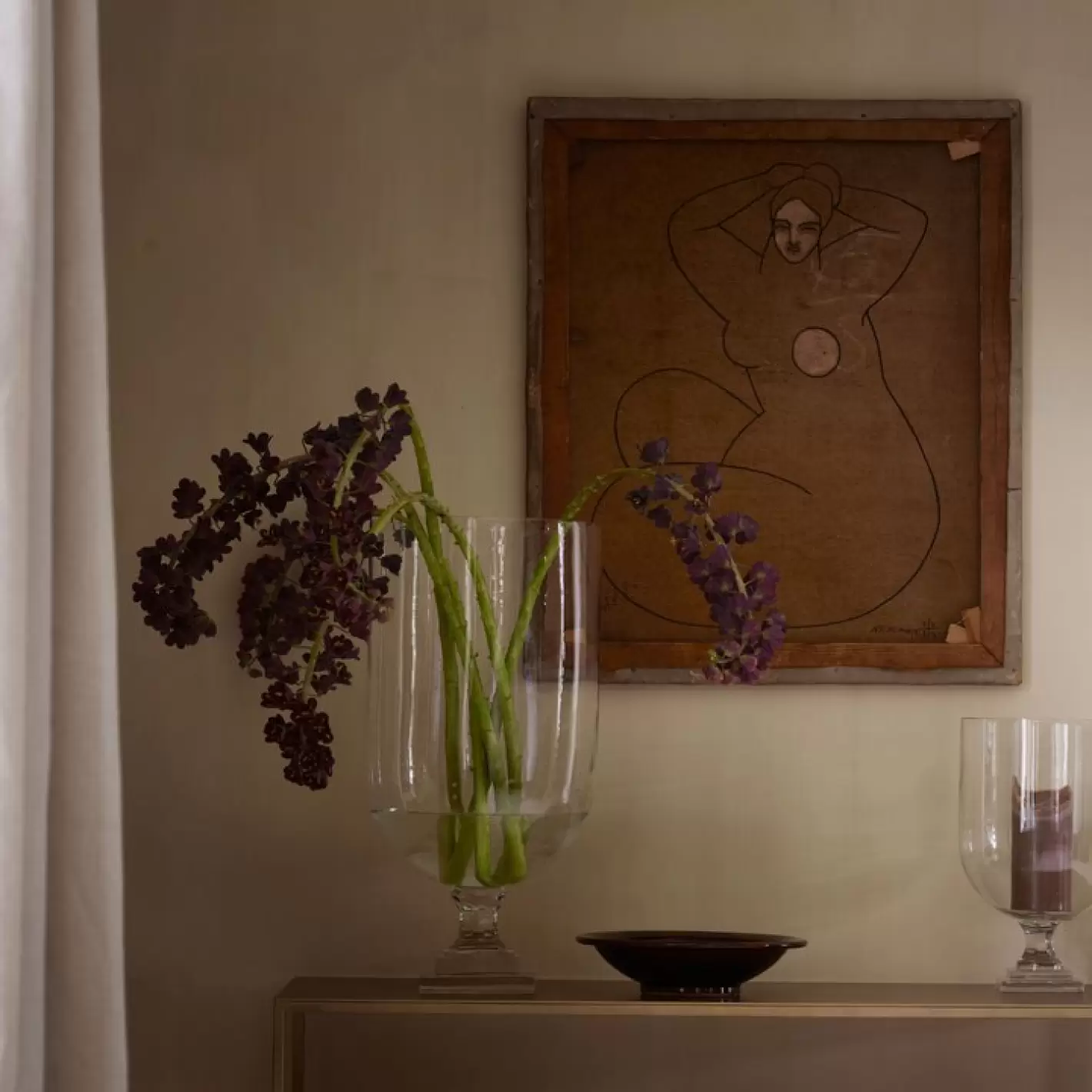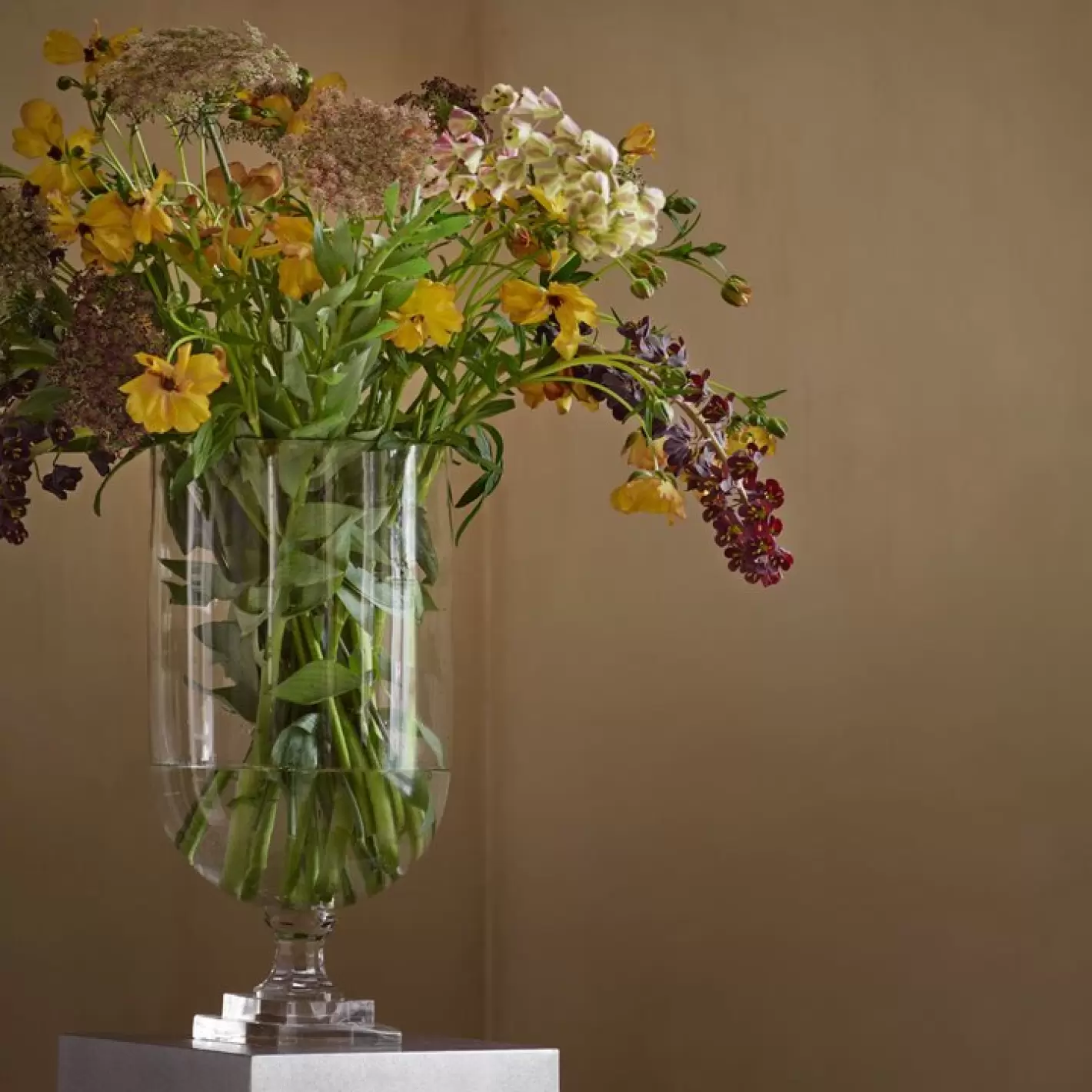 Glasvase på kvadratisk fod, Klar Ø:25*50 - Hent selv