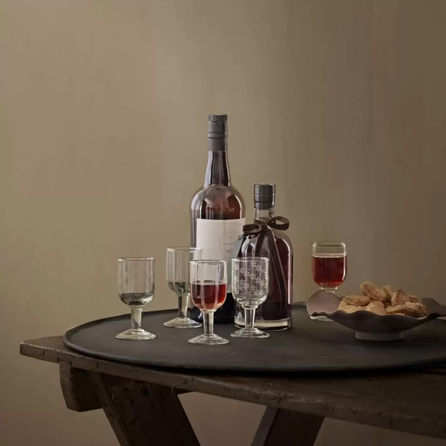 Det fineste portvinsglas med klassiske former og et dekorativt mønster af brede lodrette mælkehvide striber.