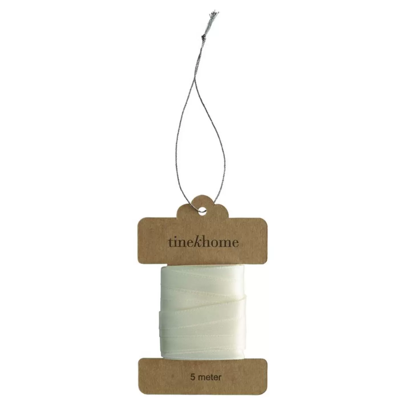 Smalt gavebånd af satin i den fineste cremefarvede nuance som er perfekt til eksklusive gaveindpakninger, til sløjfer på julens dekorationer og andre kreative projekter.