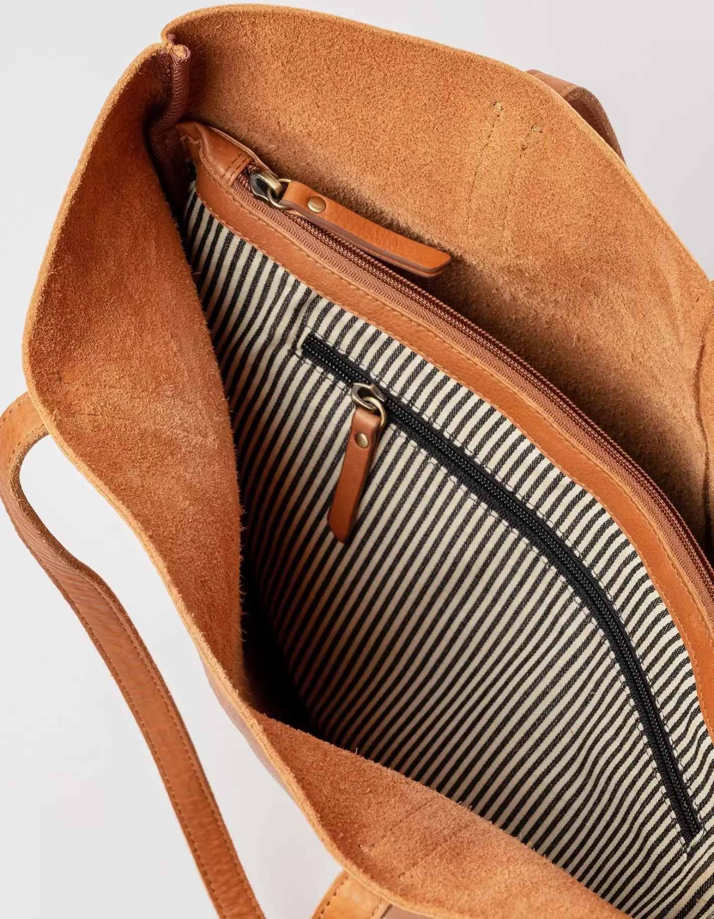 Den rummelige taske er designet som en klassisk shopper med lange hanke til både kvinder og mænd med indvendig lynlåslomme af O My Bags signaturstribede genanvendte bomuld, og desuden en mindre lomme også med lynlås, så småtingene kan organiseres, så de altid er lige ved hånden.