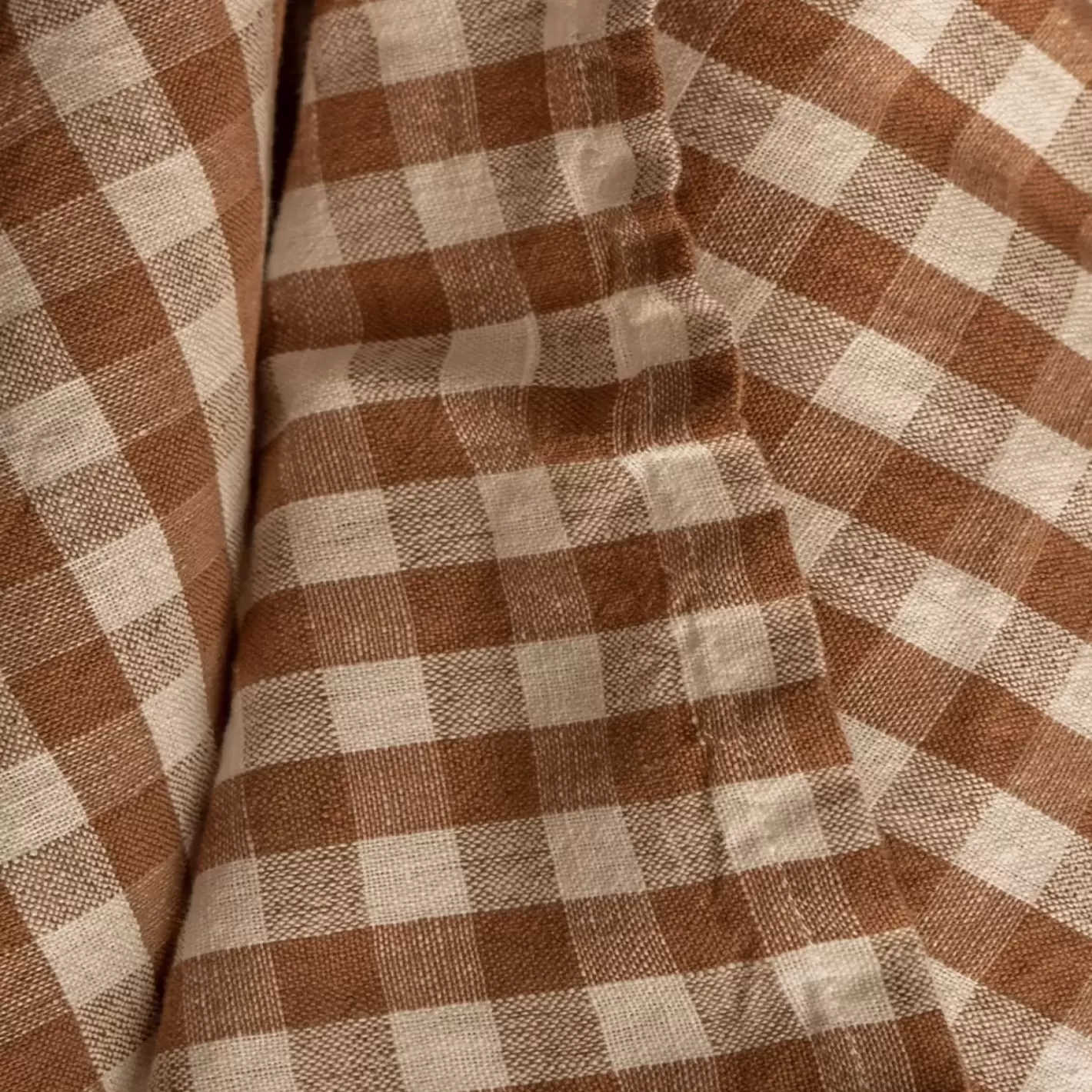 Kollektionen Misty er fremstillet af europæisk hør i en let og luftig specialvasket kvalitet, som har en skøn blødhed - og se lige hvor smuk dugen er med de smukke tern i mandelbrune og råhvide nuancer.