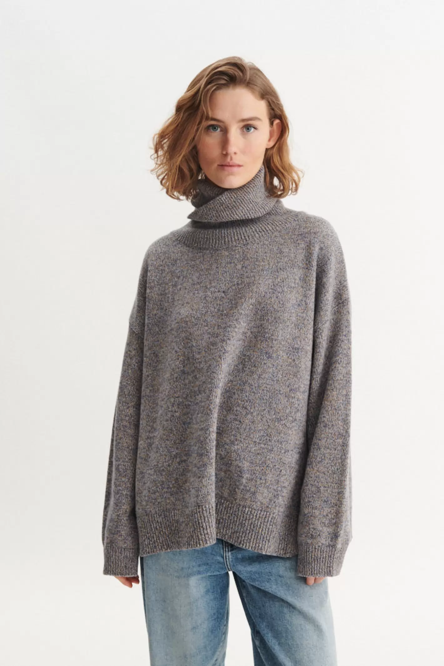 Blød og komfortabel oversized sweater med høj krave, lange ærmer og en flot rummelig pasform som skaber et afslappet og komfortabelt udtryk.