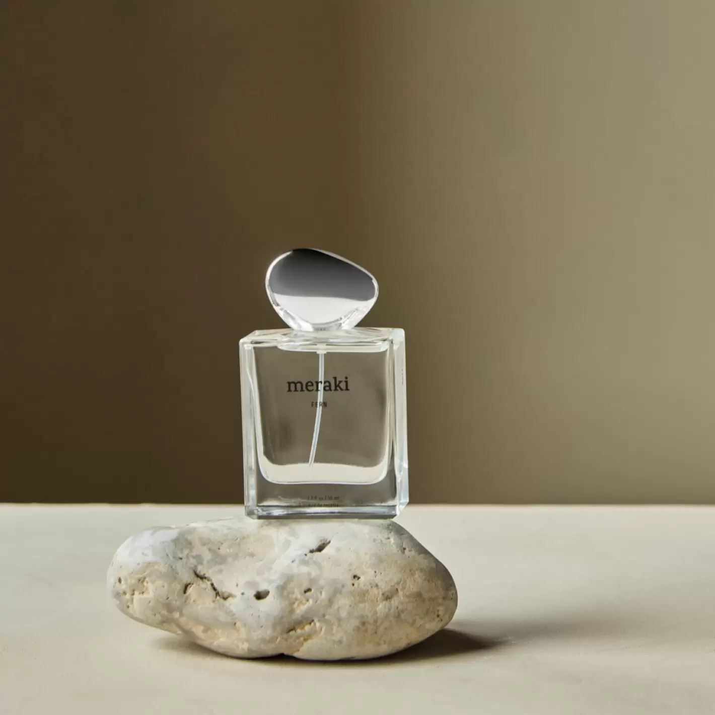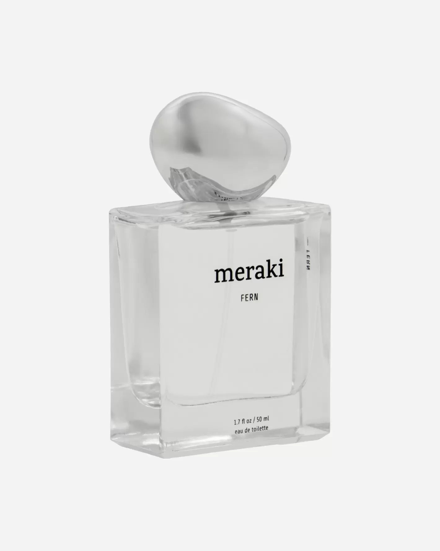 En enkel flakon med en elegant organisk formet sølvfarvet prop. som rummer Merakis friske duft Fern, hvor rene grønne topnoter møder en varm, træagtig base i perfekt harmoni. - en afbalanceret duft som er perfekt til hverdagsbrug.