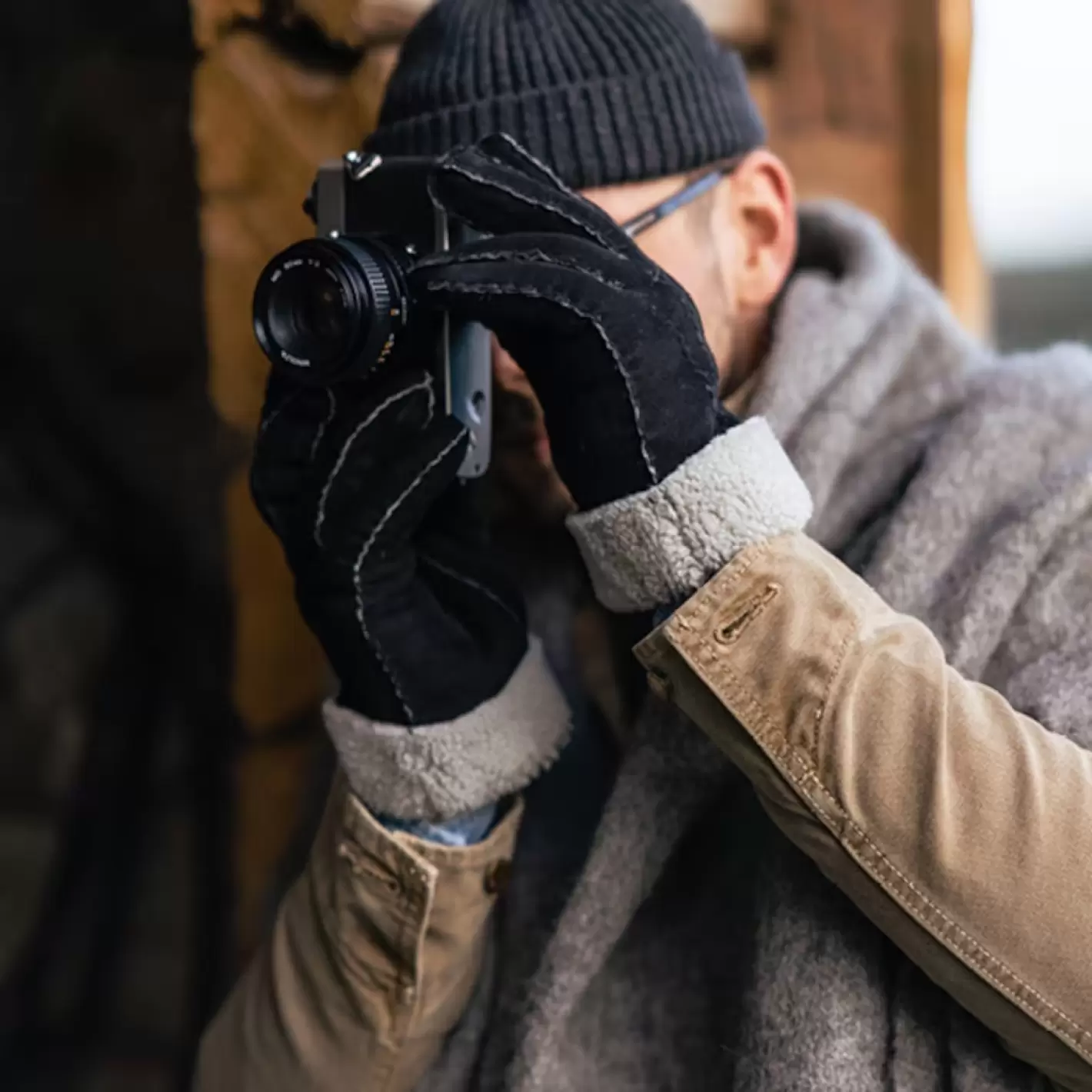 Klassiske handsker til manden, der værdsætter stil og funktionalitet - fremstillet af blødt, børstet ruskind med dekorative sømme på håndryggen og rå ydersømme. Handskerne har for af 100% lammeskind, som giver naturlig varme og åndbarhed uden at de bliver for varme.