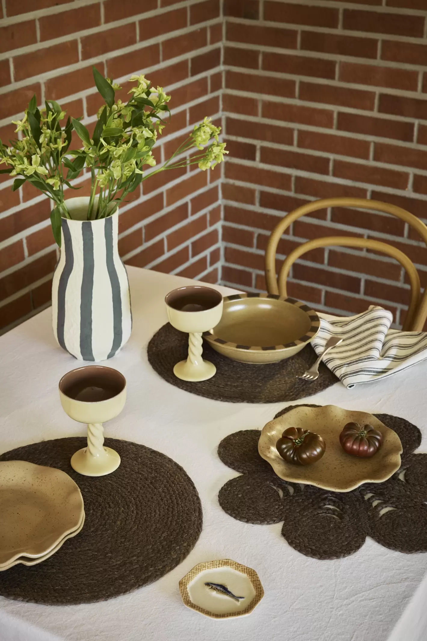 Håndflettet vendbar dækkeserviet i jute flettet af kaffebrune fibre. Flettede dækkeservietter er super fine på spisebordet både sammen med rustikt stentøj og som kontrast til mere skrøbeligt porcelæn.